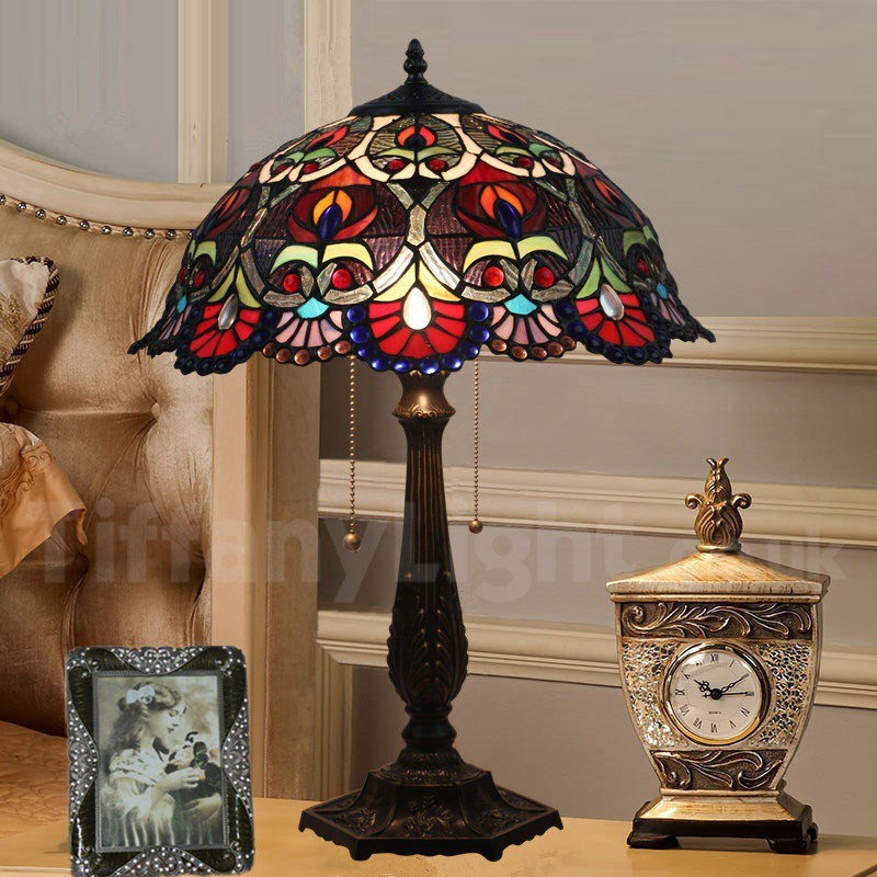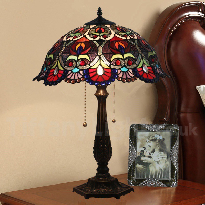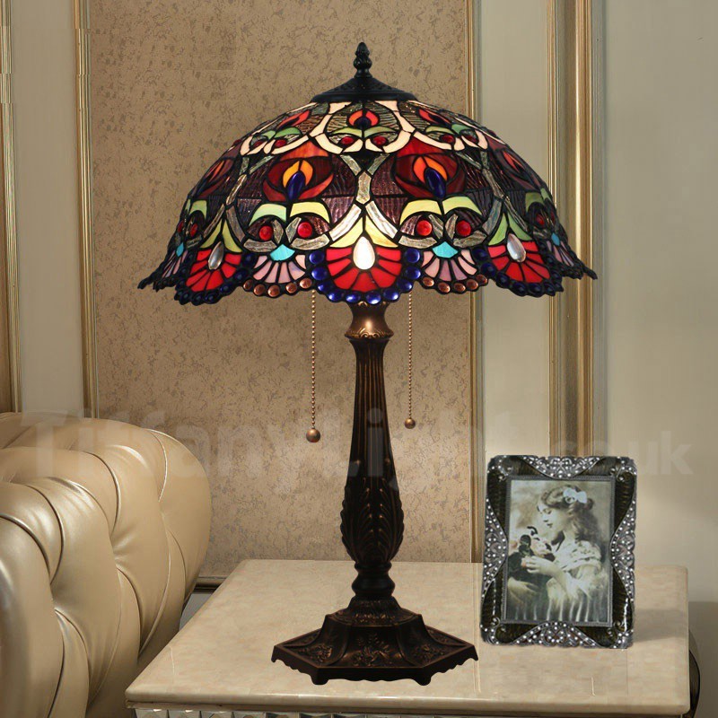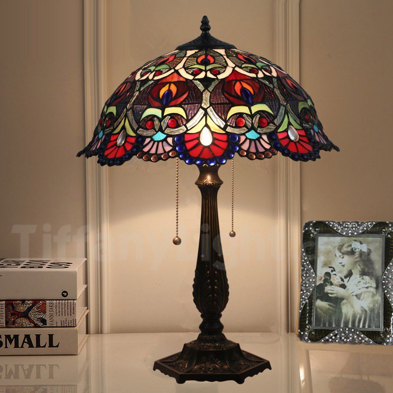 Ръчно изработена винтидж 16-инчова настолна лампа Тифани в бароков стил с витражи