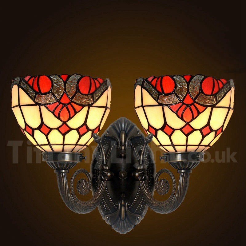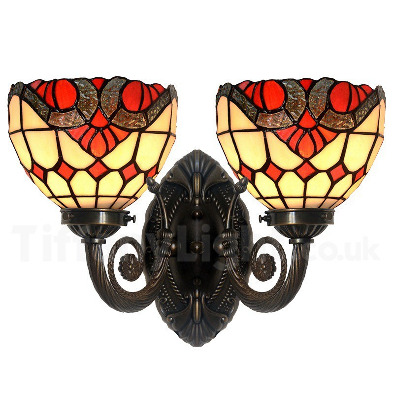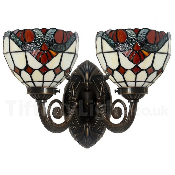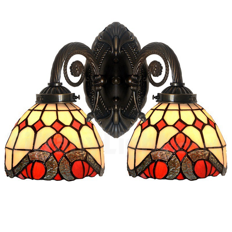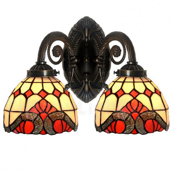 Ръчно изработена винтидж стенна лампа с 2 лампи в бароков стил Тифани