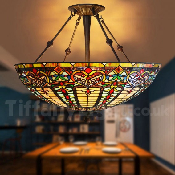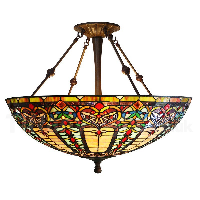 Ръчно изработена винтидж 22-инчова барокова висяща лампа Тифани
