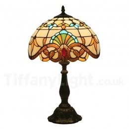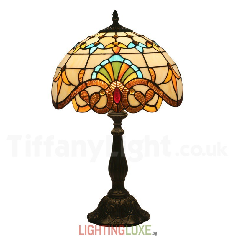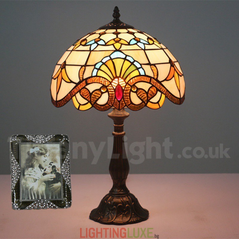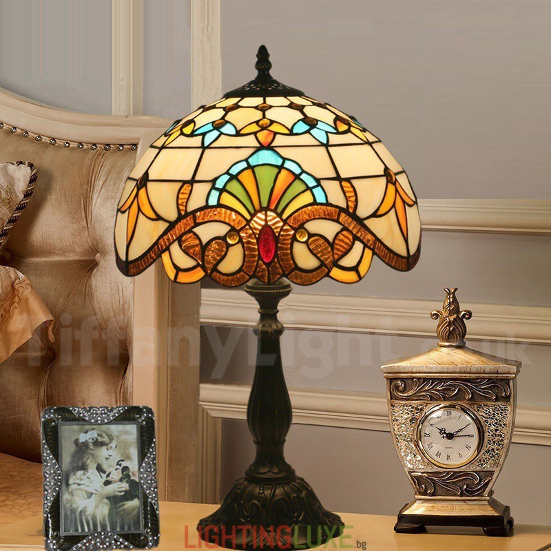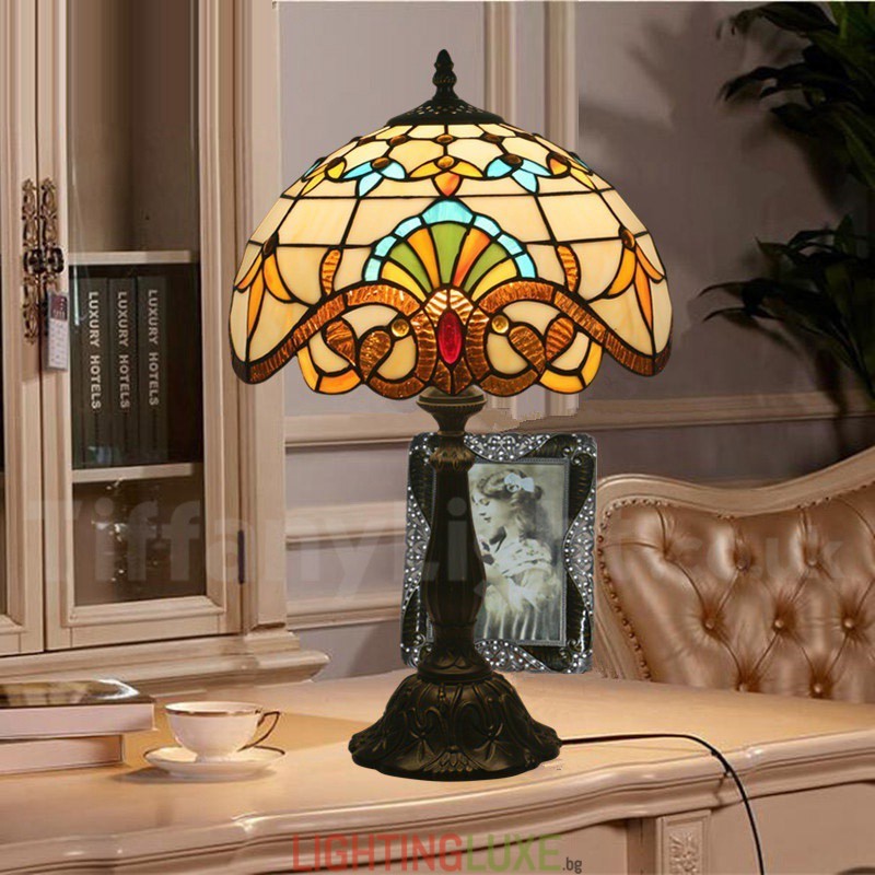 Ръчно изработена винтидж 12-инчова настолна лампа Тифани в бароков стил с витражи