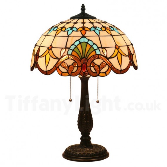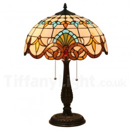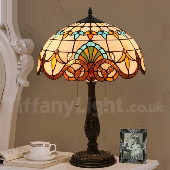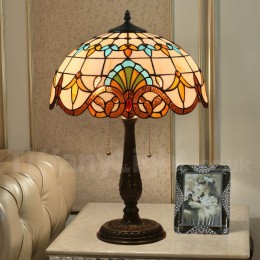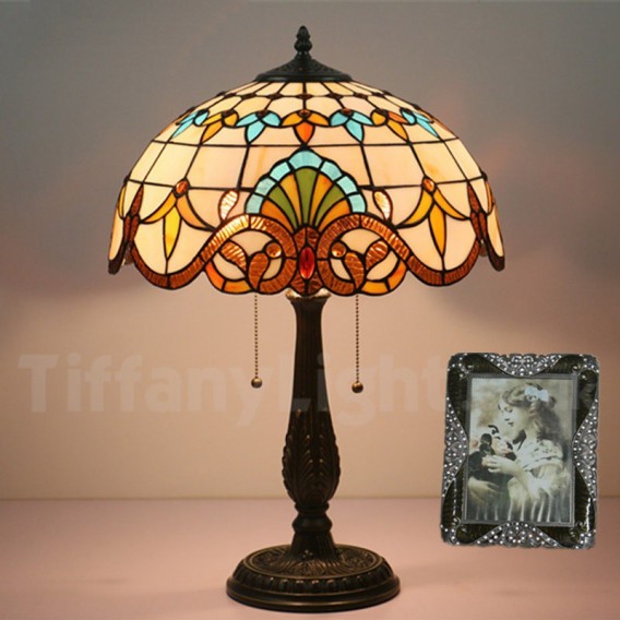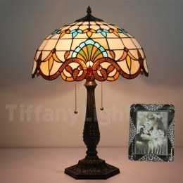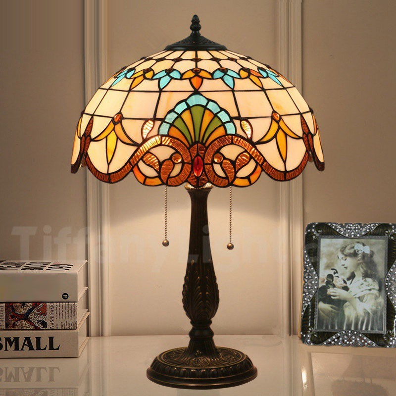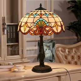 Ръчно изработена винтидж 16-инчова настолна лампа Тифани в бароков стил с витражи