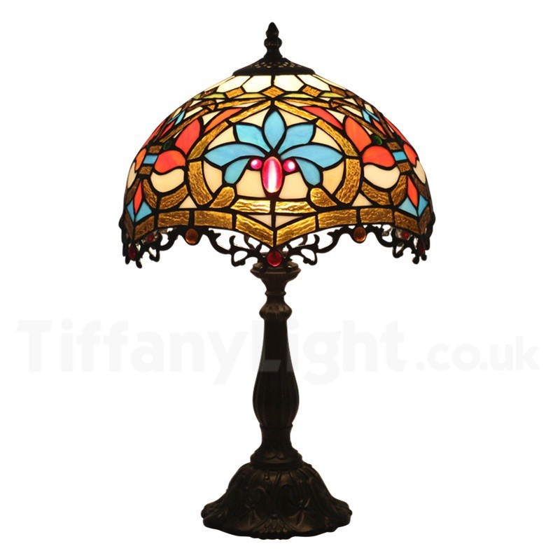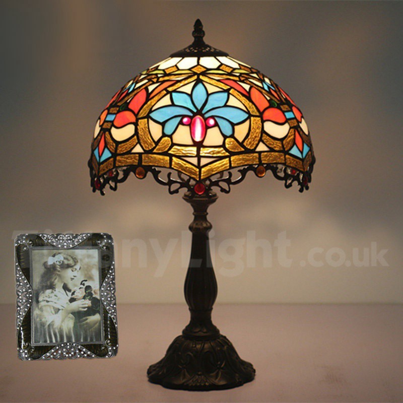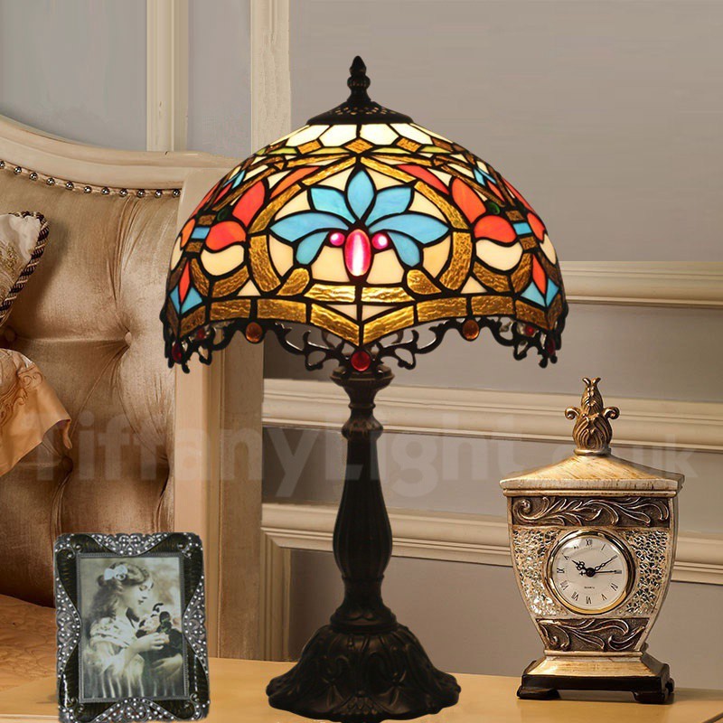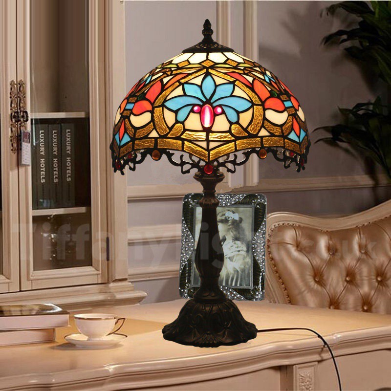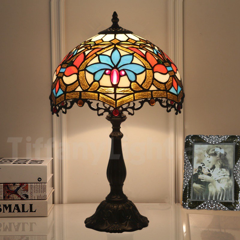 Ръчно изработена винтидж 12-инчова настолна лампа Тифани в бароков стил с витражи