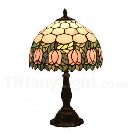 Ръчно изработена винтидж 12-инчова настолна лампа Тифани с витраж в стил лале