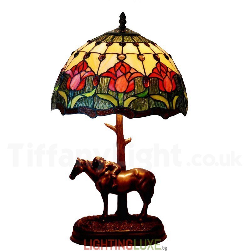 Ръчно изработена винтидж 12-инчова настолна лампа Тифани с червено лале