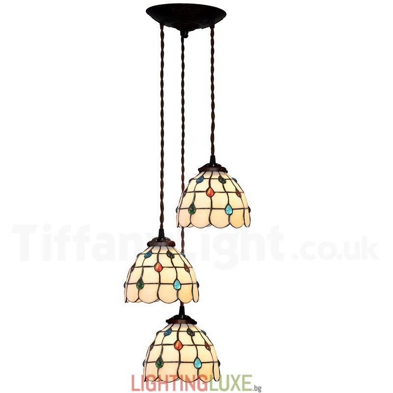 Ръчно изработена винтидж лампа Tiffany Palace с 3 лампи, 7 инча