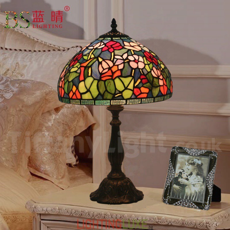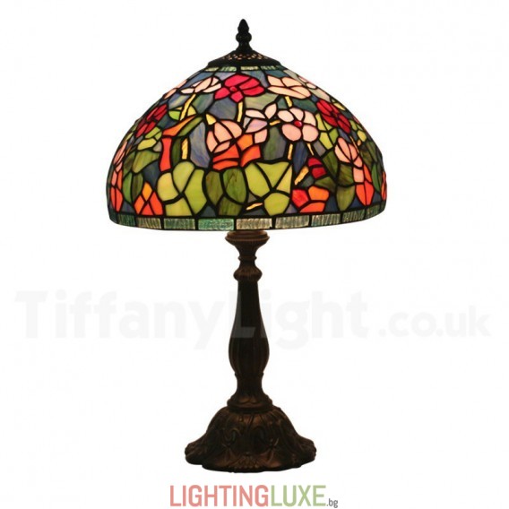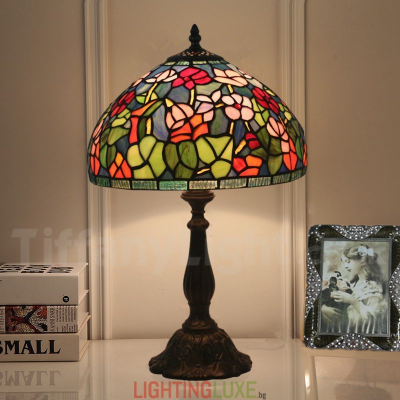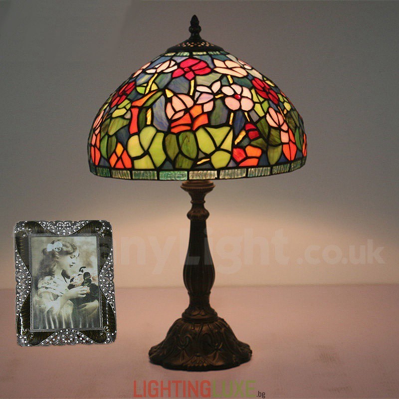 Ръчно изработена винтидж 12-инчова настолна лампа Тифани от витражно стъкло