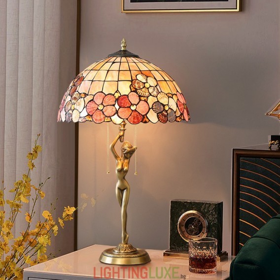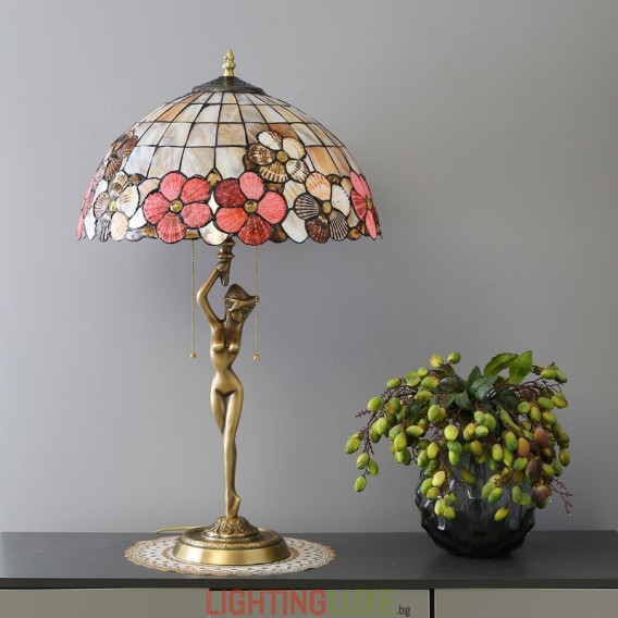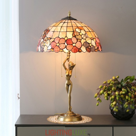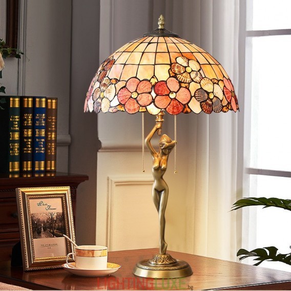 Материал на абажура:Витраж + естествена черупка
