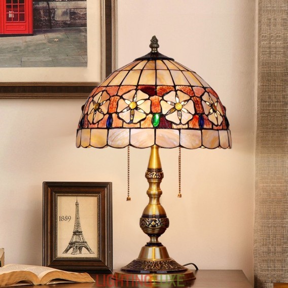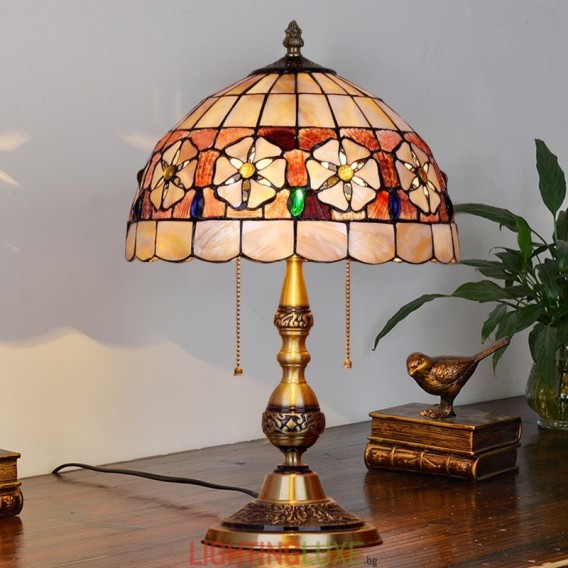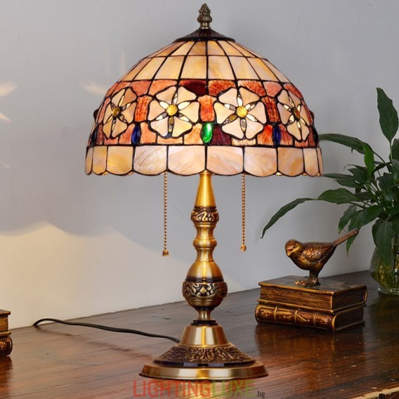 Материал на абажура:Витраж + Естествена черупка