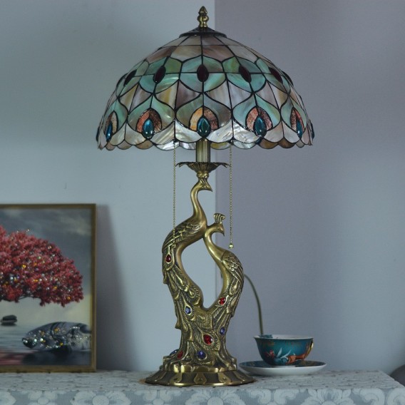 Ръчно изработена винтидж 14-инчова луксозна стъклена черупка с абажури Phoenix от чиста месингова основа в стил Тифани