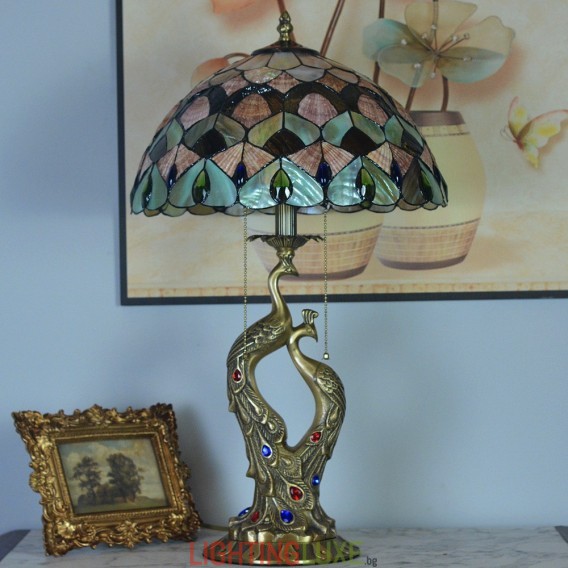 Материал на абажура:Витраж + Естествена черупка