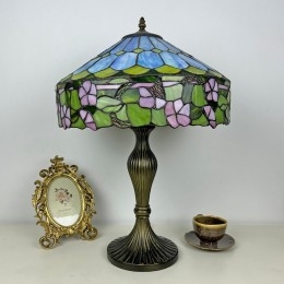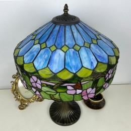 Ръчно изработена винтидж голяма 16-инчова лампа с абажур във формата на цвете, стил Тифани, витражна настолна лампа