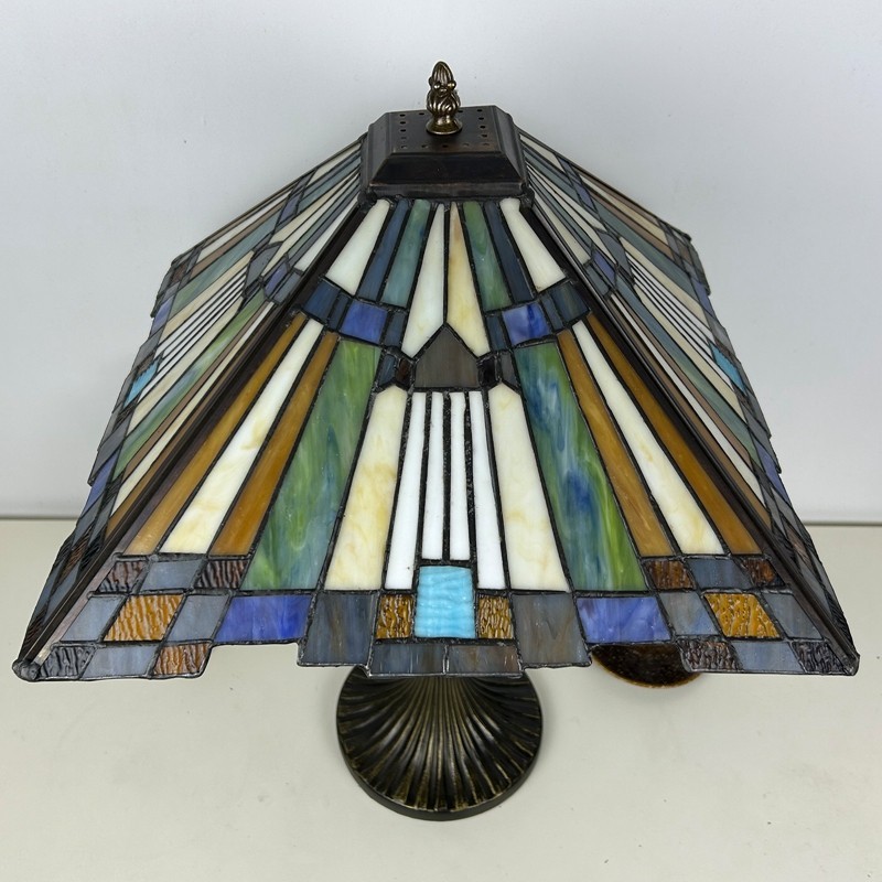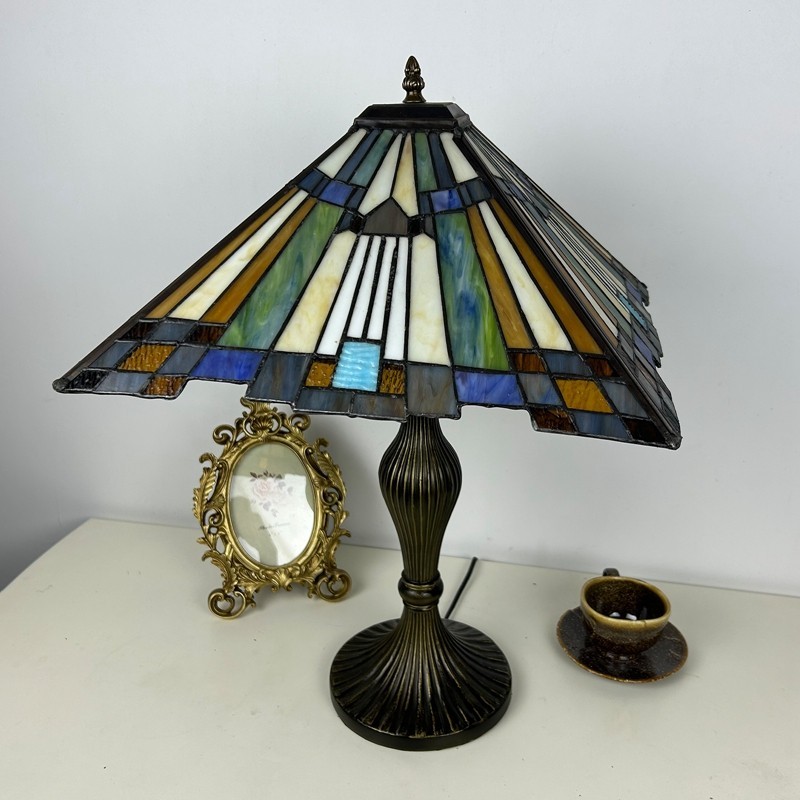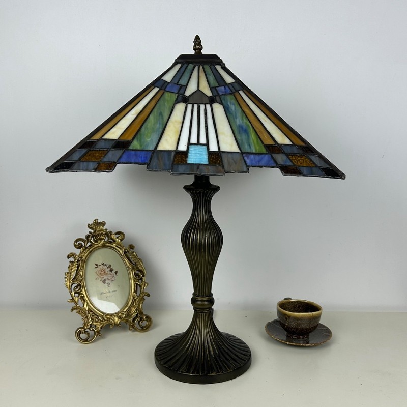Ръчно изработена винтидж голяма 16-инчова барокова абажурна лампа в стил Тифани с витраж