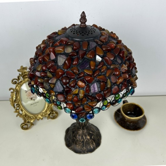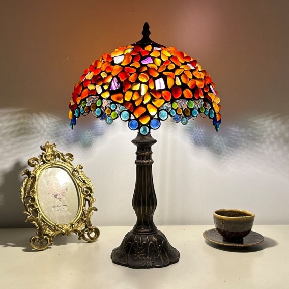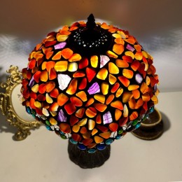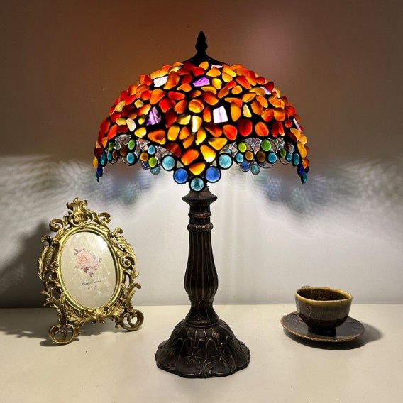 Ръчно изработена винтидж голяма 16-инчова абажурна настолна лампа в стил Тифани с витраж