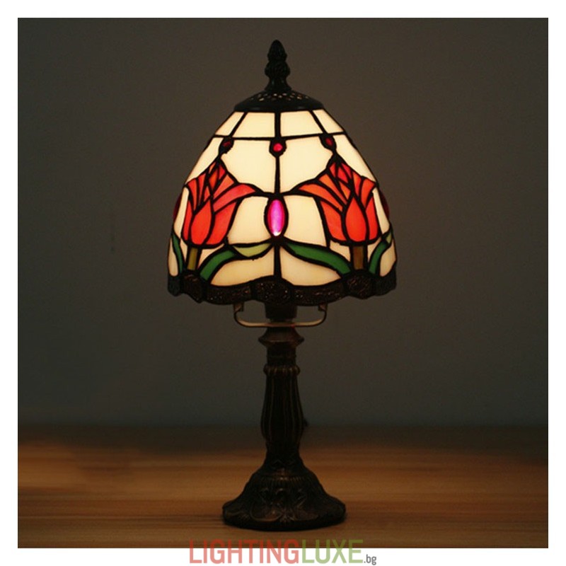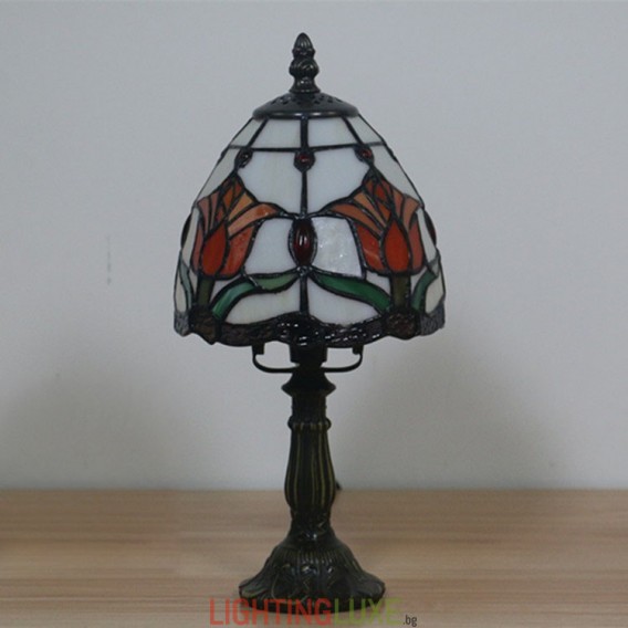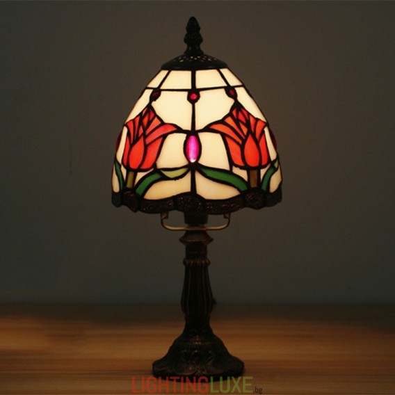 Ръчно изработена винтидж лале 6 инча витражно стъкло настолна лампа Тифани
