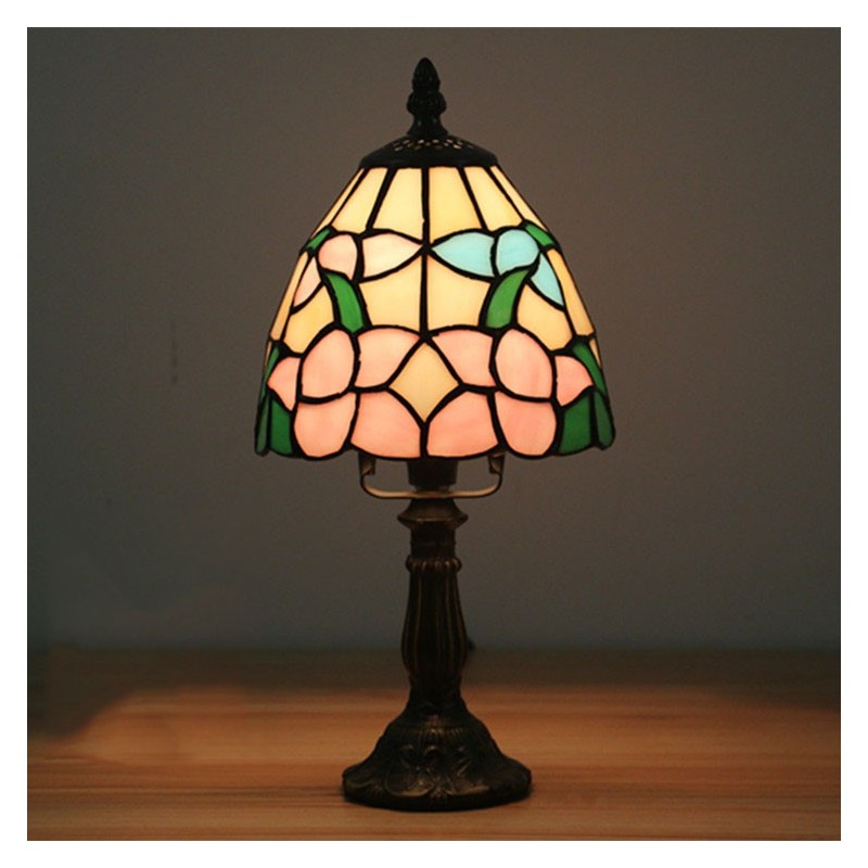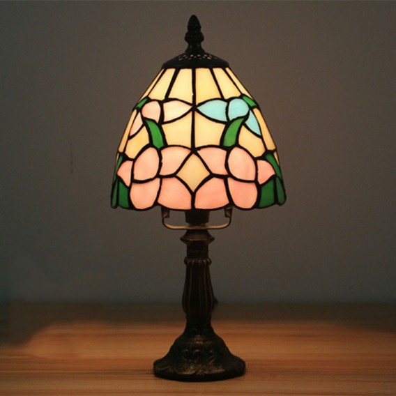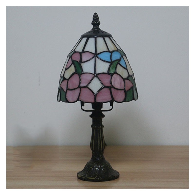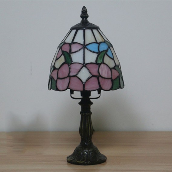 Ръчно изработена настолна лампа Тифани с винтидж цвете, 6 инча