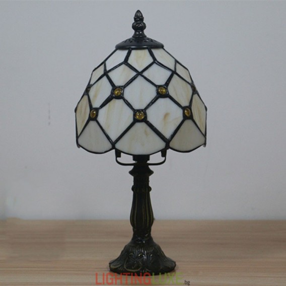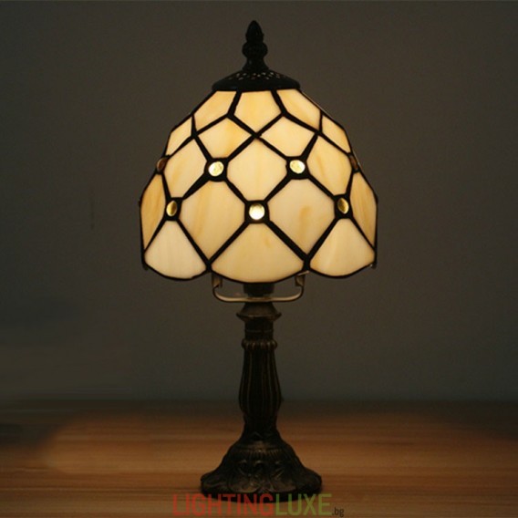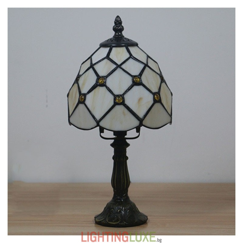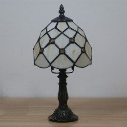 Ръчно изработена винтидж барокова 6-инчова настолна лампа Тифани от витражно стъкло
