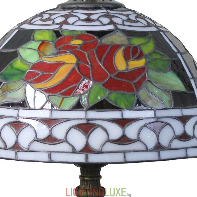 Ръчно изработена винтидж 12-инчова пасторална ретро настолна лампа Тифани с абажур с мотив на червена роза