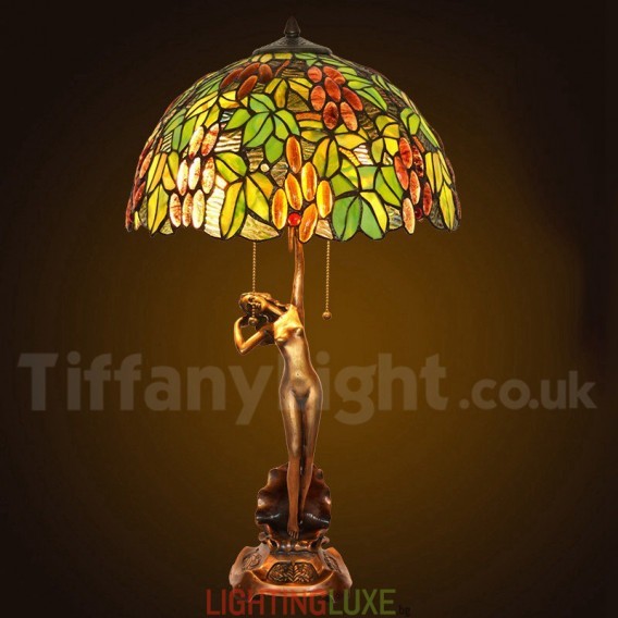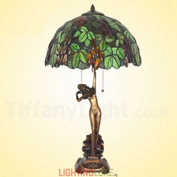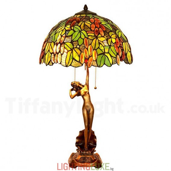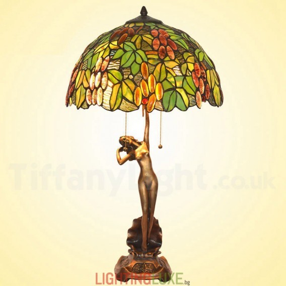 Ръчно изработена винтидж 16-инчова ретро настолна лампа Tiffany с гроздов цвят