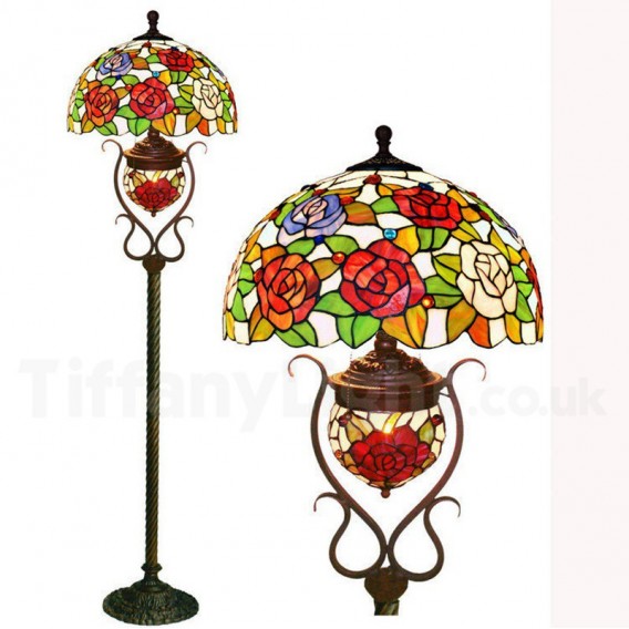 Ръчно изработена винтидж 16-инчова подова лампа Тифани с розов цвят