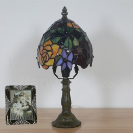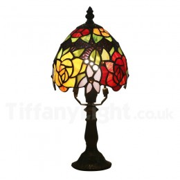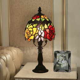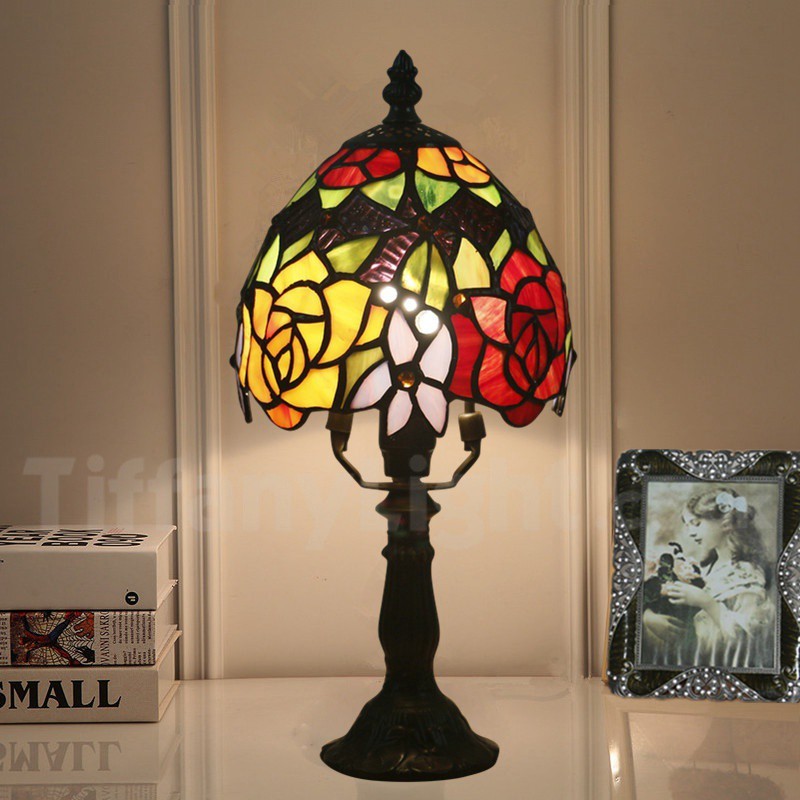 Ръчно изработена винтидж 6-инчова настолна лампа Тифани с витраж в стил роза