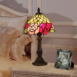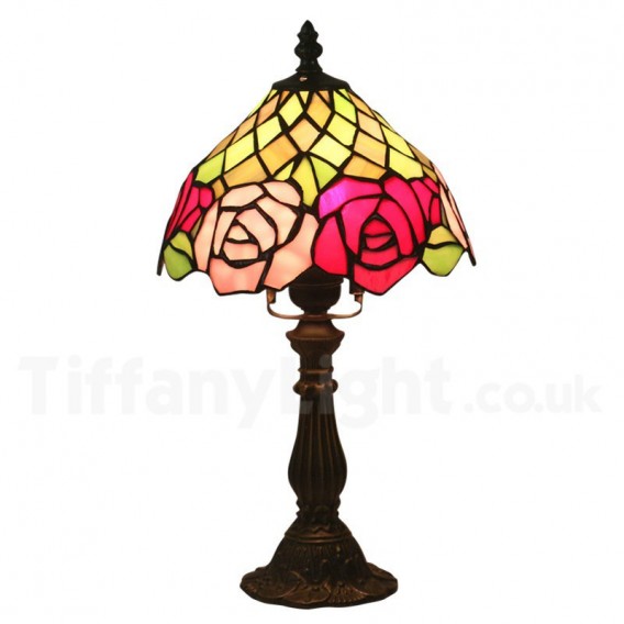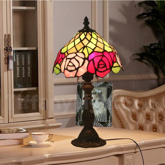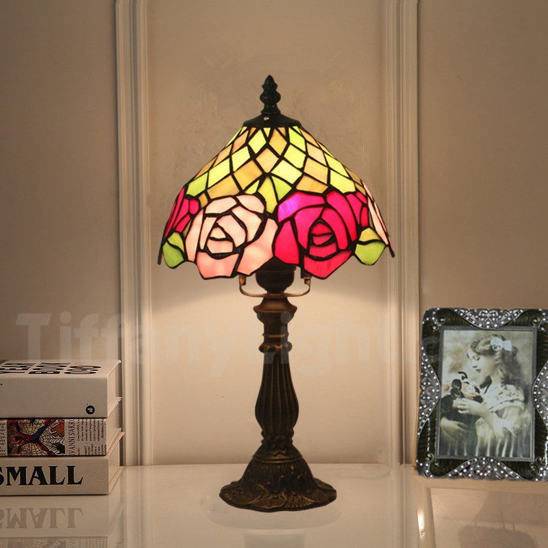 Ръчно изработена винтидж 8-инчова настолна лампа Тифани с витраж в стил роза