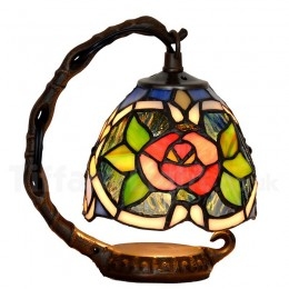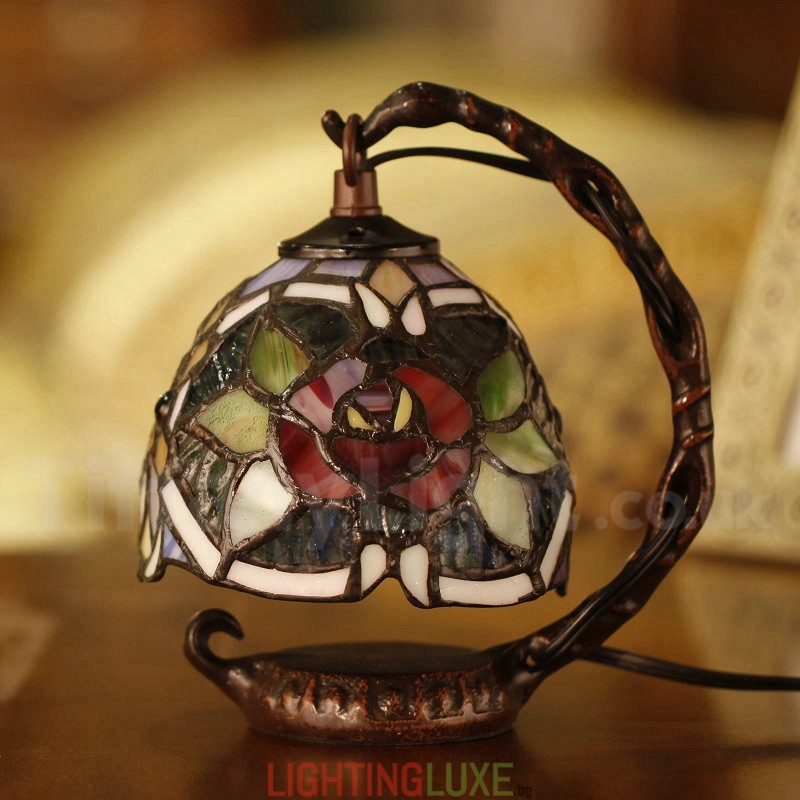 Ръчно изработена винтидж настолна лампа Тифани в розово-червен цвят