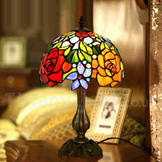 Ръчно изработена винтидж 10-инчова настолна лампа Тифани в селски розов цвят