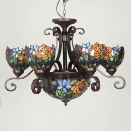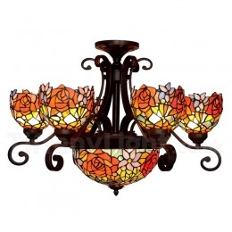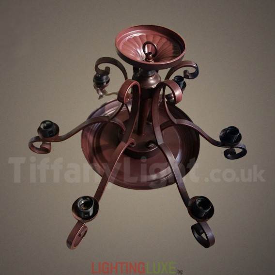 Ръчно изработен винтидж полилей Тифани с 6 светлини в селски розов цвят