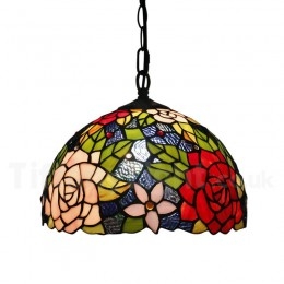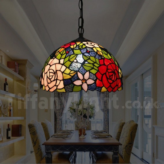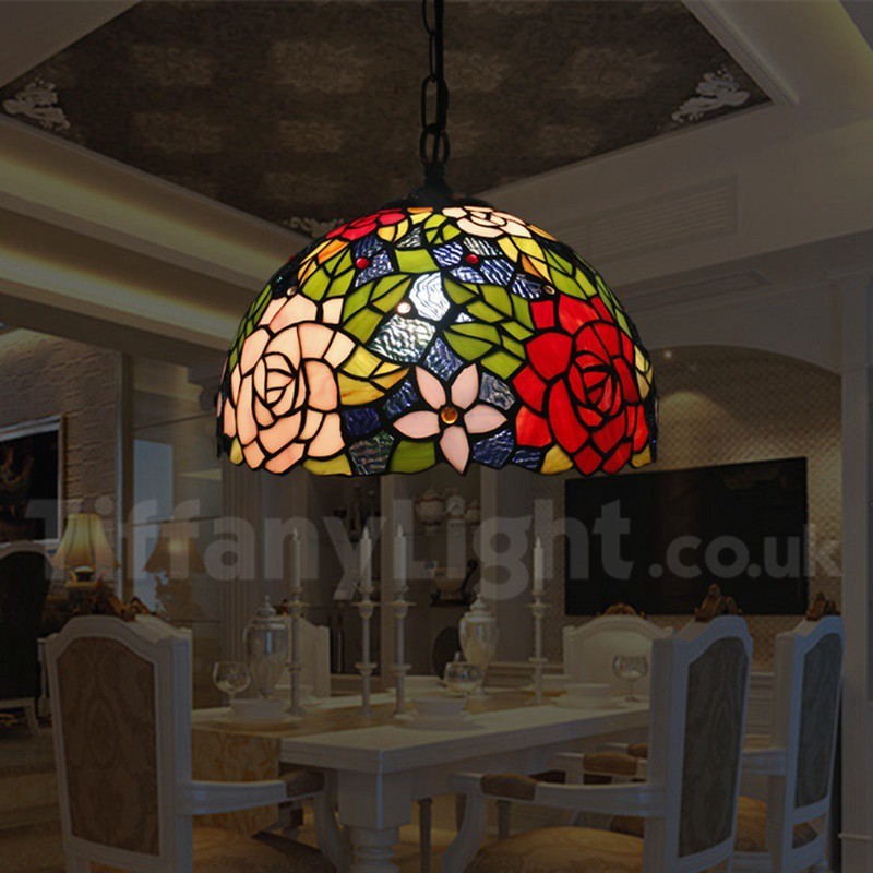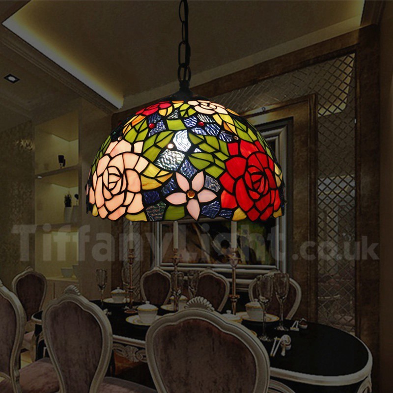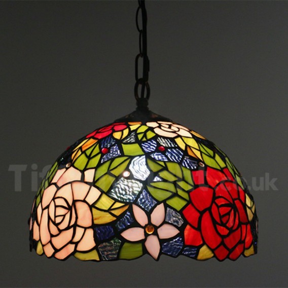 Ръчно изработена винтидж 12-инчова витражна стъклена лампа Тифани в стил роза