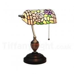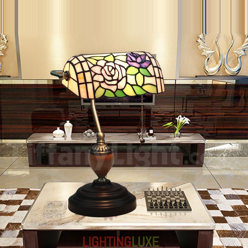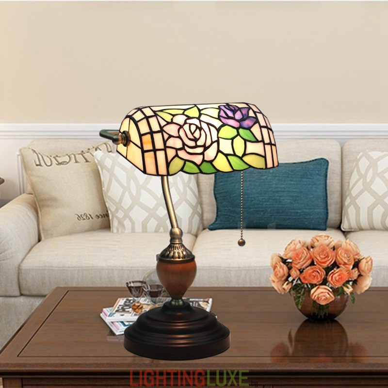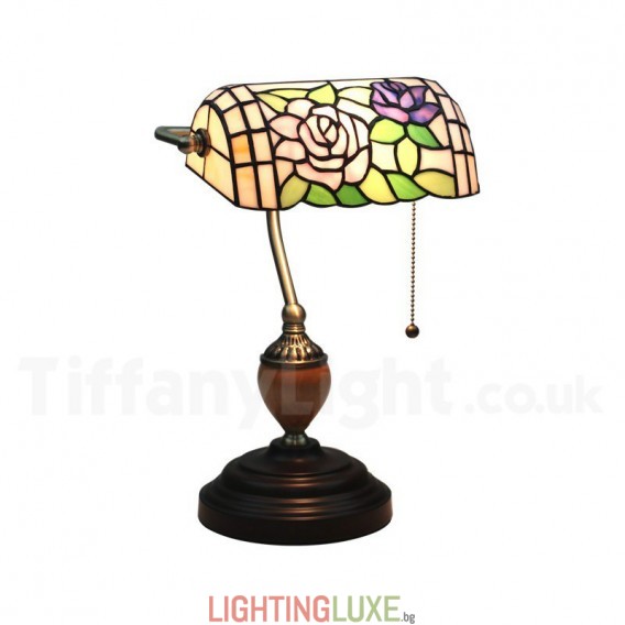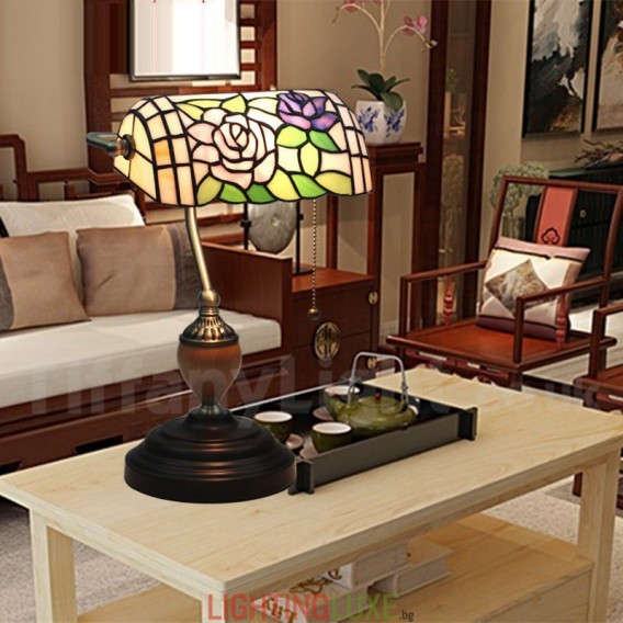 Ръчно изработена настолна лампа Тифани от винтидж витраж в стил роза