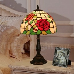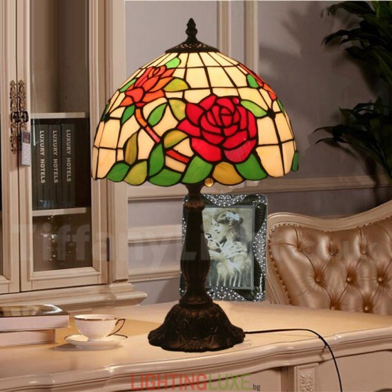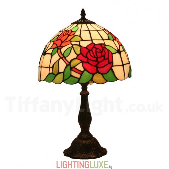 Ръчно изработена винтидж 12-инчова настолна лампа Тифани с витраж в стил роза