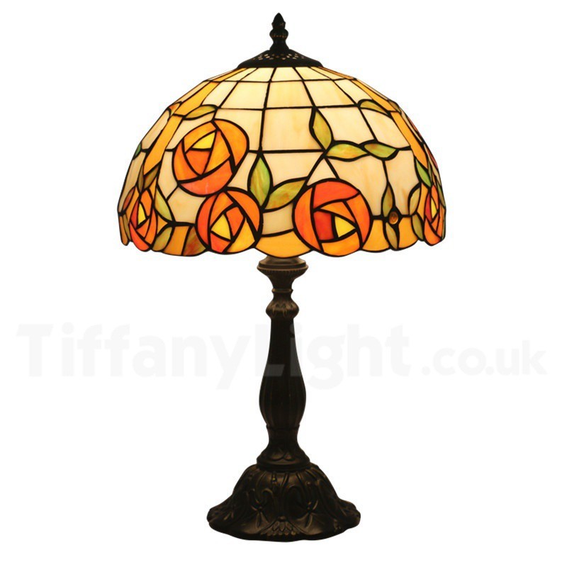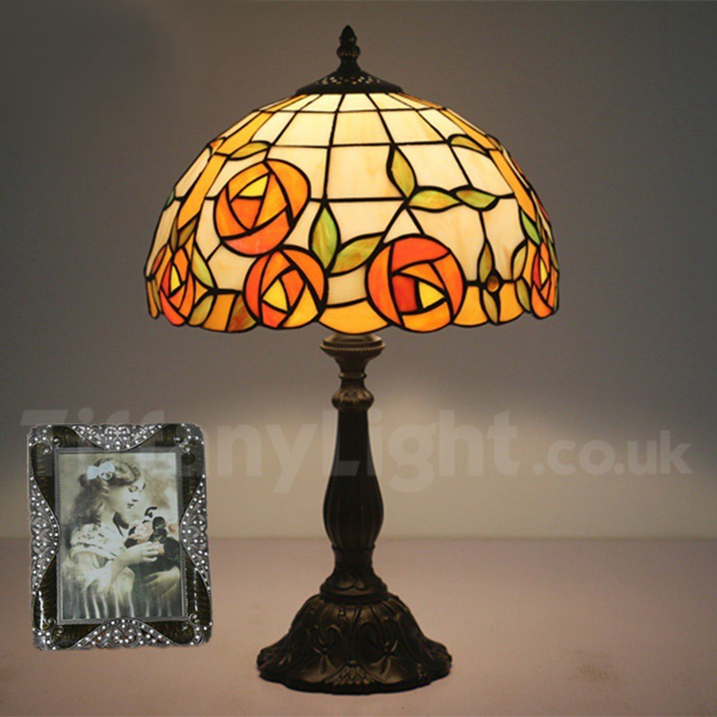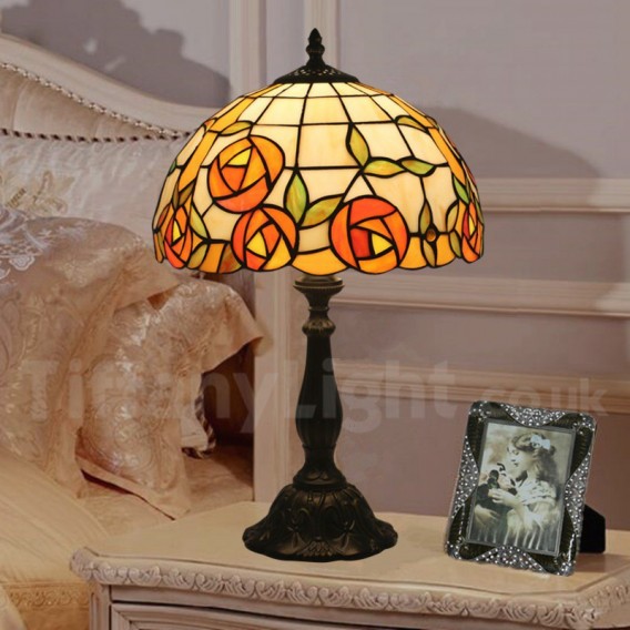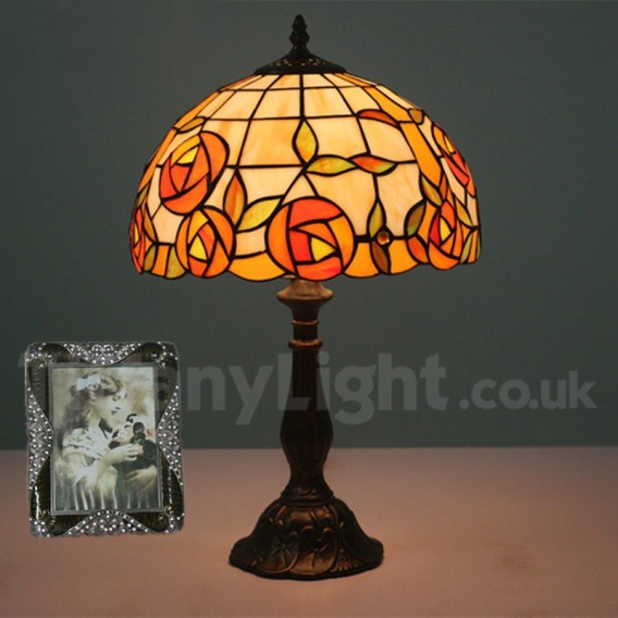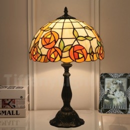 Ръчно изработена винтидж 12-инчова настолна лампа Тифани с витраж в стил роза