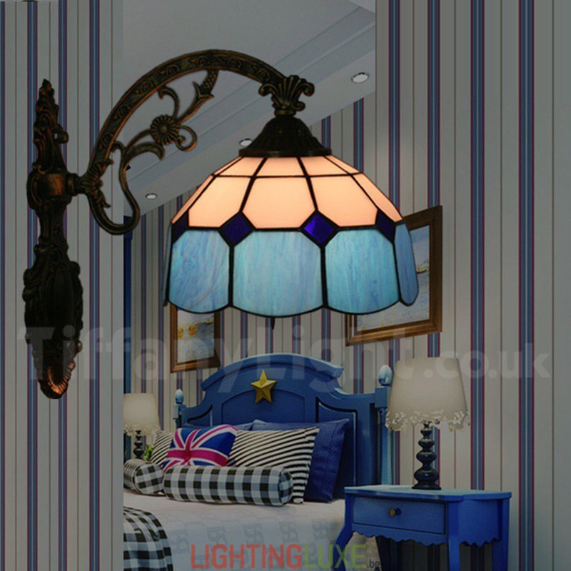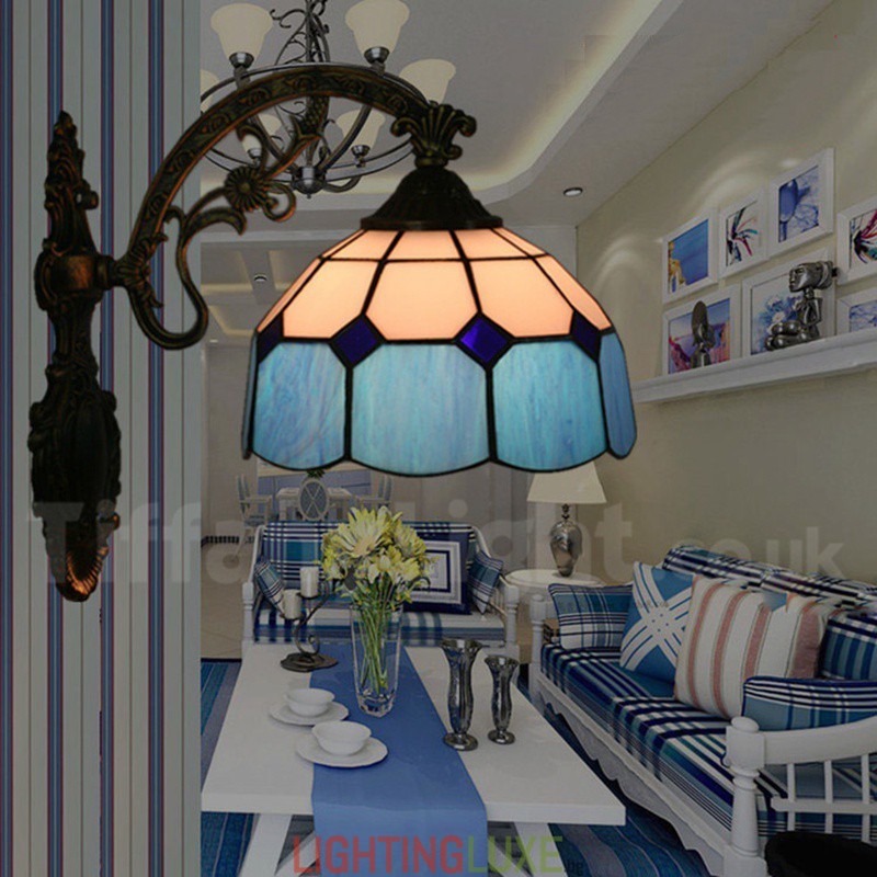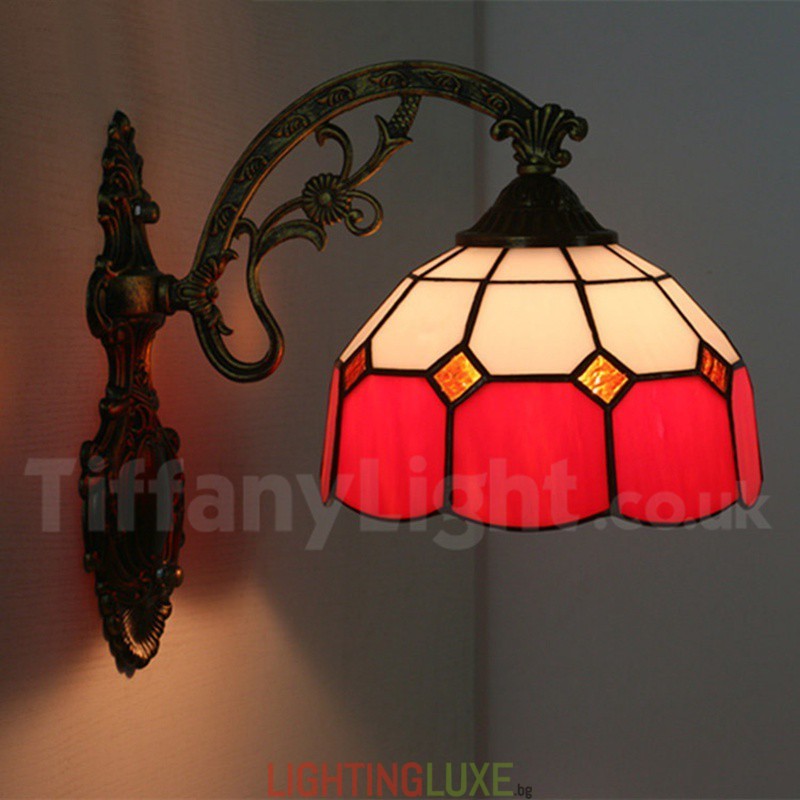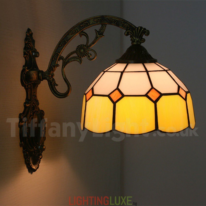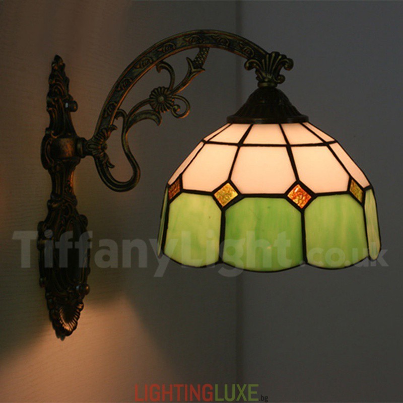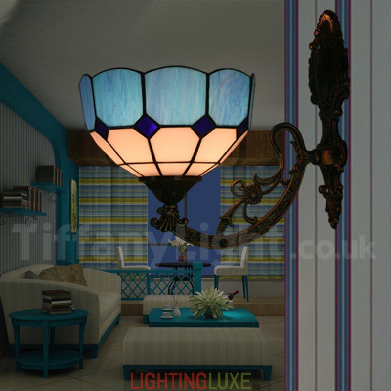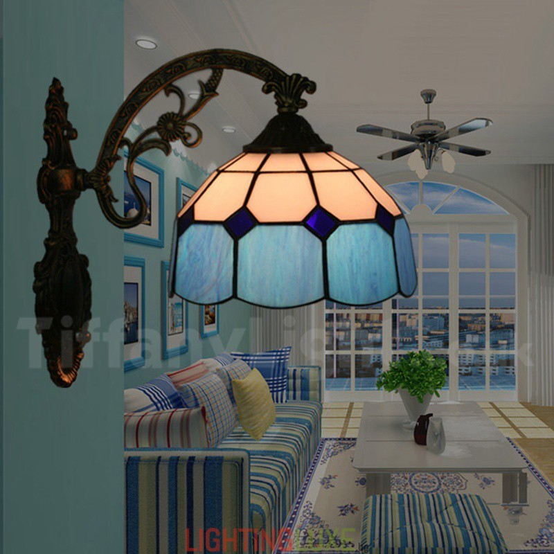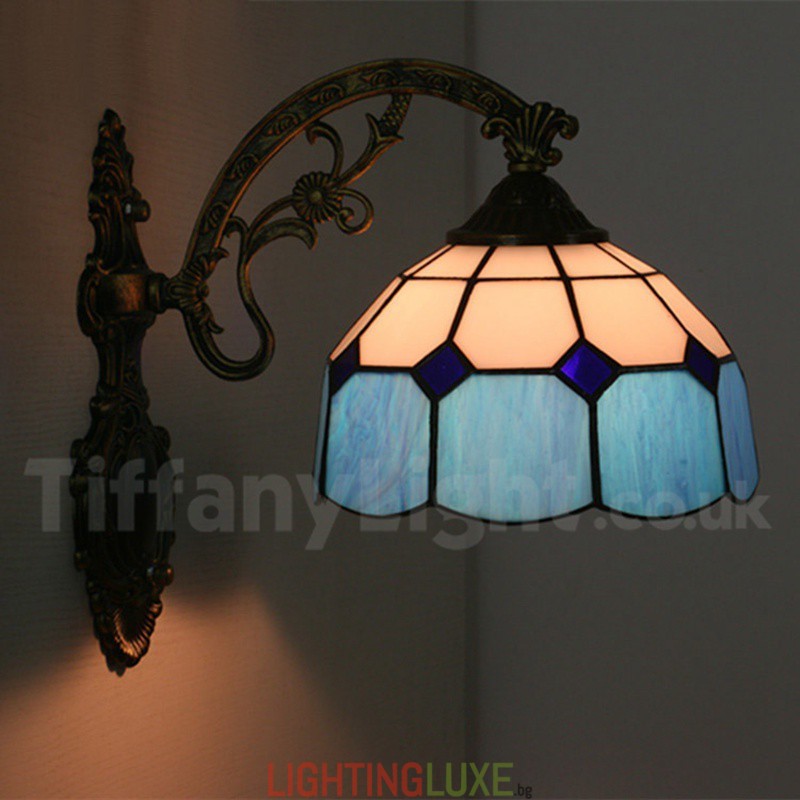 Ръчно изработена винтидж 8-инчова средиземноморска витражна стенна лампа Тифани в средиземноморски стил