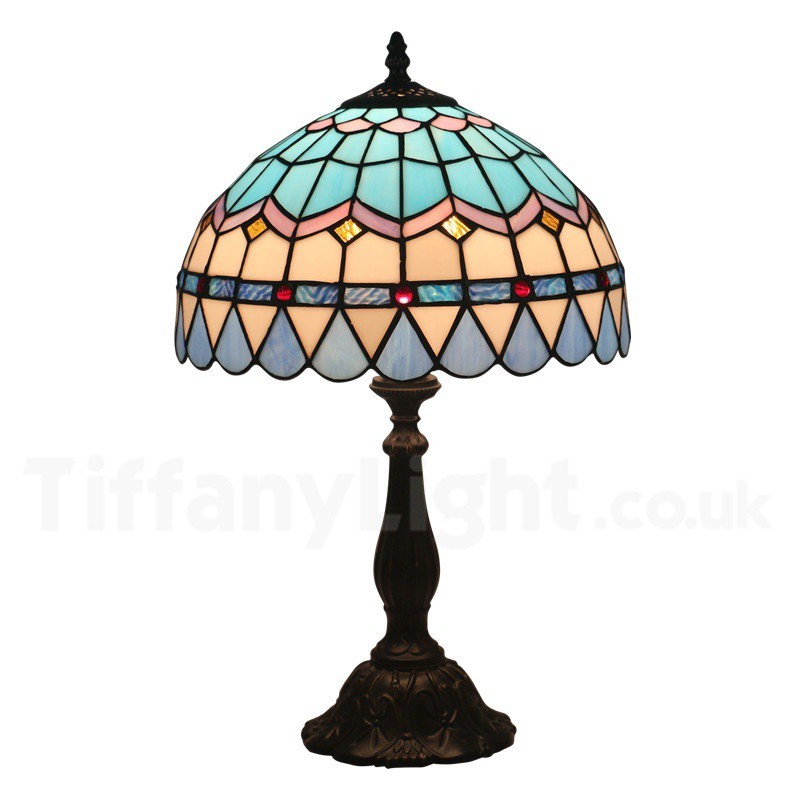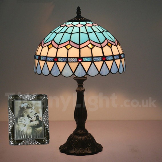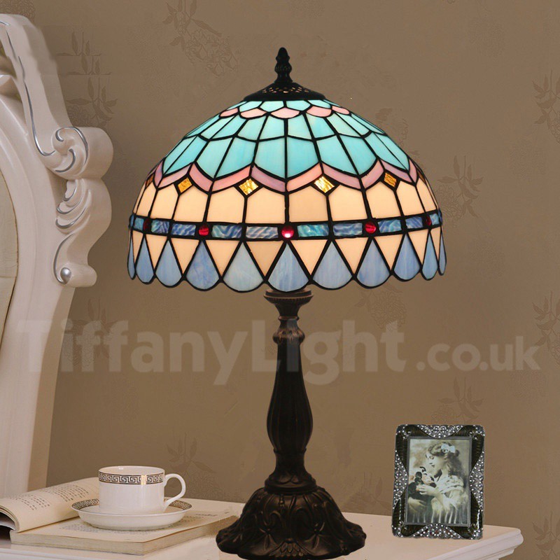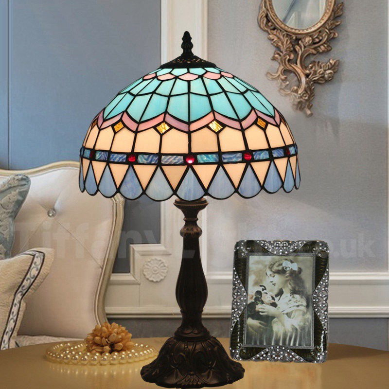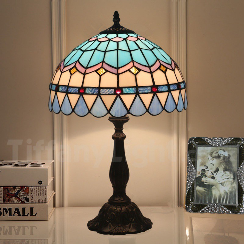 Ръчно изработена винтидж 12-инчова настолна лампа Тифани в средиземноморски стил с витражи