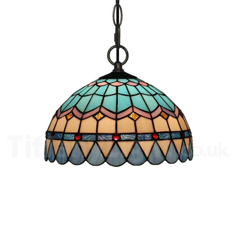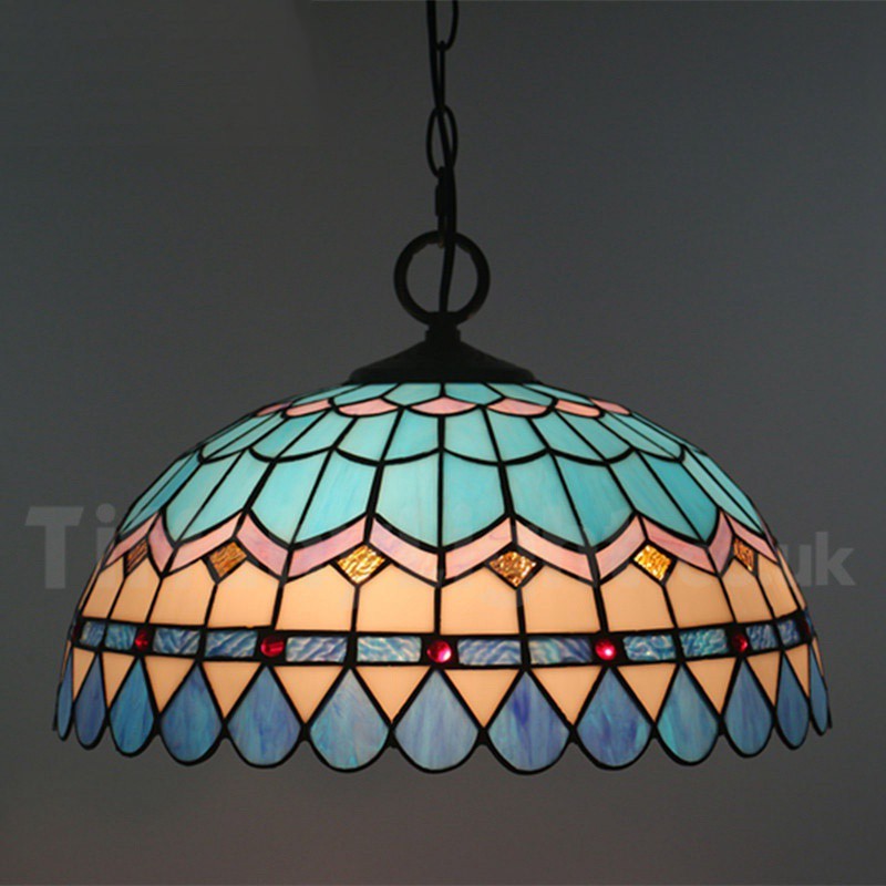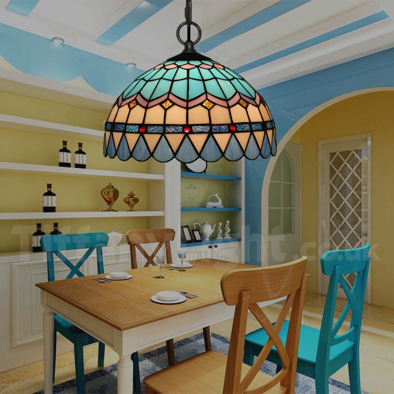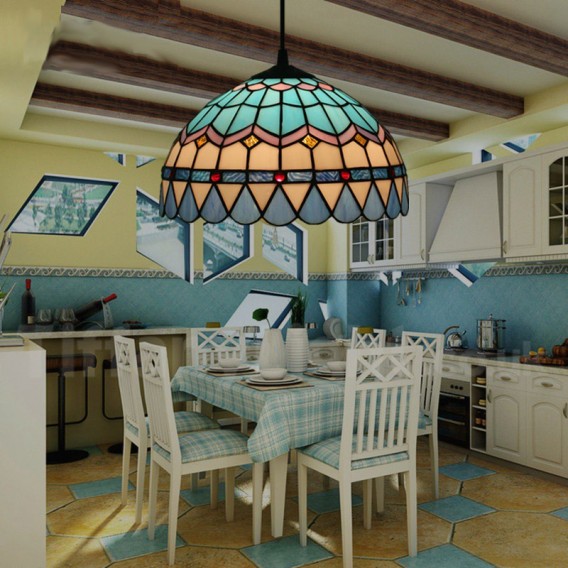 Ръчно изработена винтидж лампа Tiffany в средиземноморски стил, 12 инча, витраж