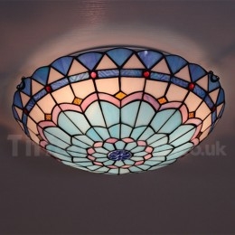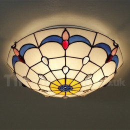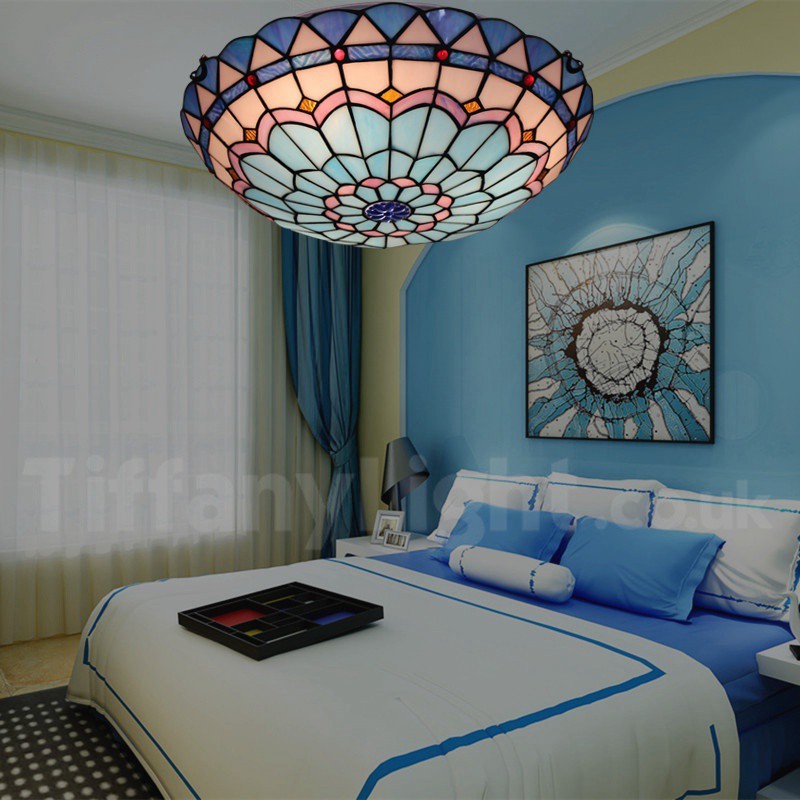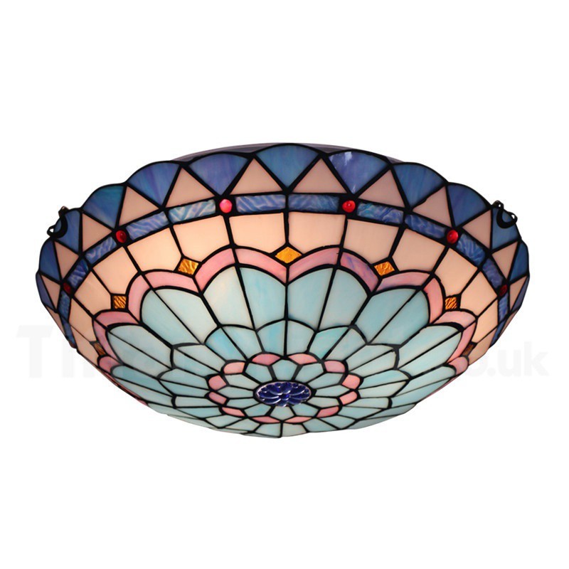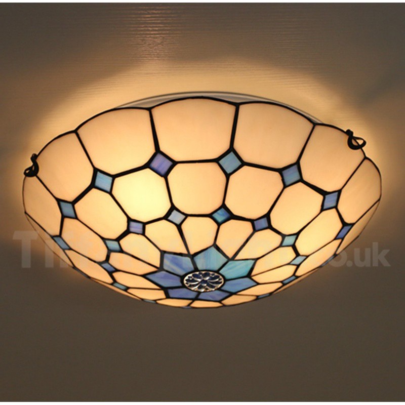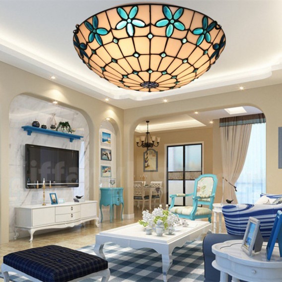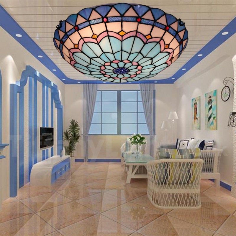 Ръчно изработена винтидж 16-инчова средиземноморска витражна лампа Tiffany в средиземноморски стил