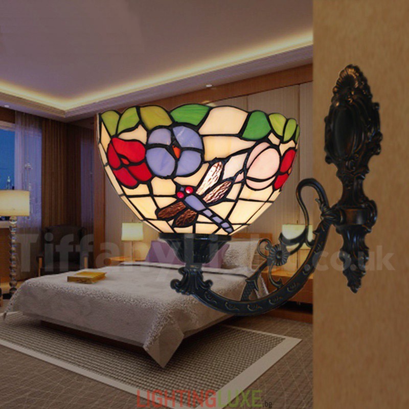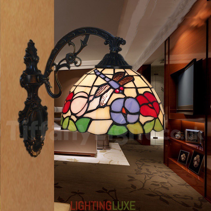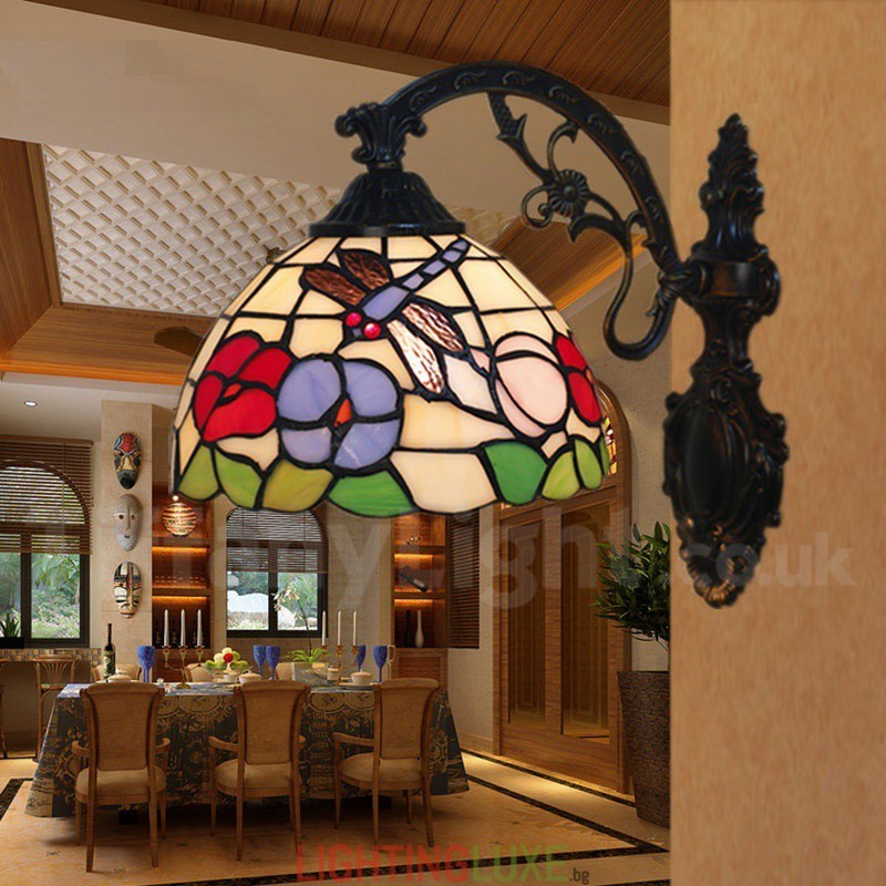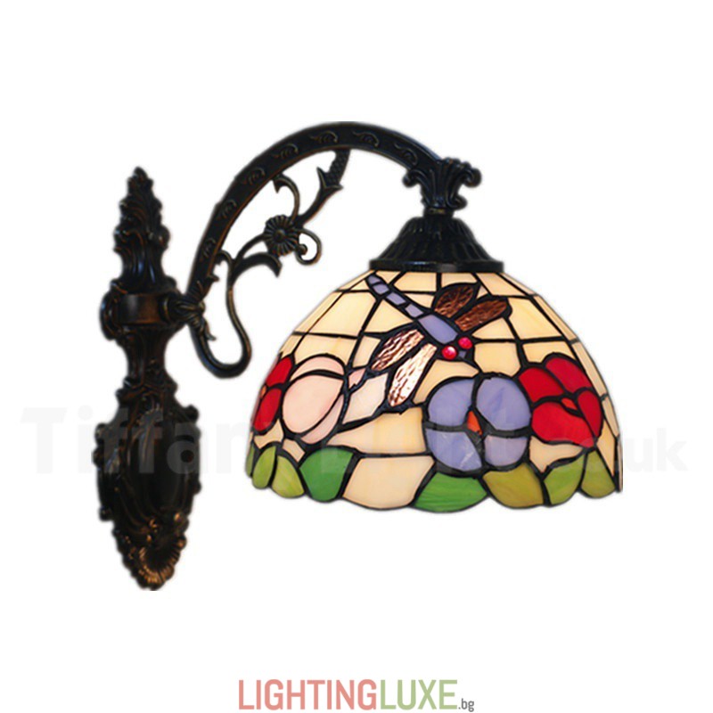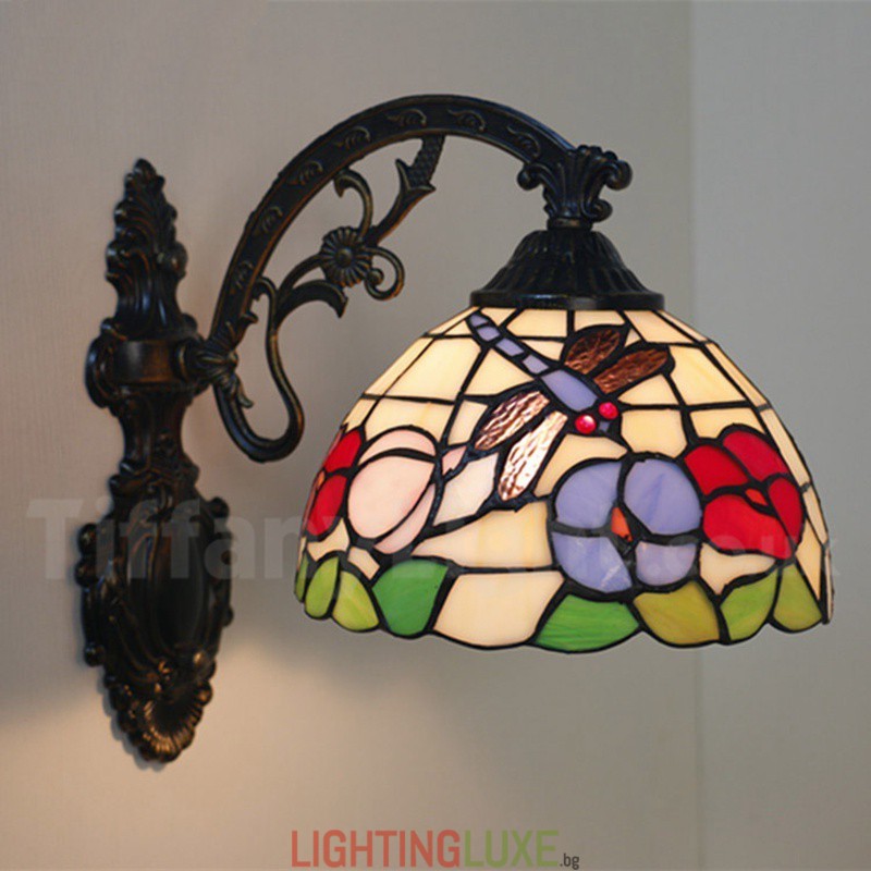Ръчно изработена винтидж 8-инчова стенна лампа Тифани от витраж