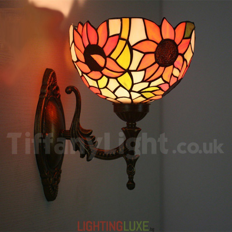 Ръчно изработена винтидж 8-инчова стенна лампа Тифани от витраж