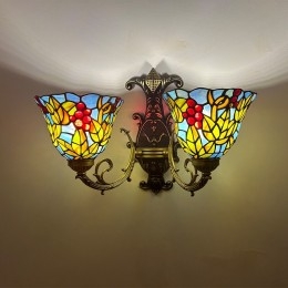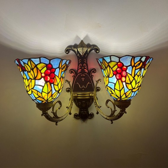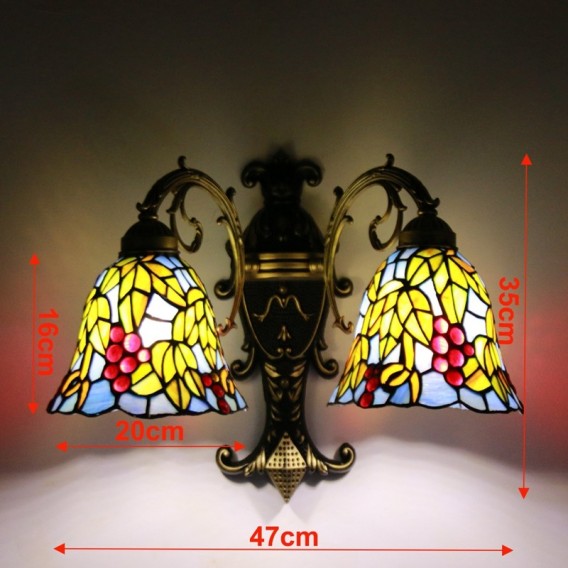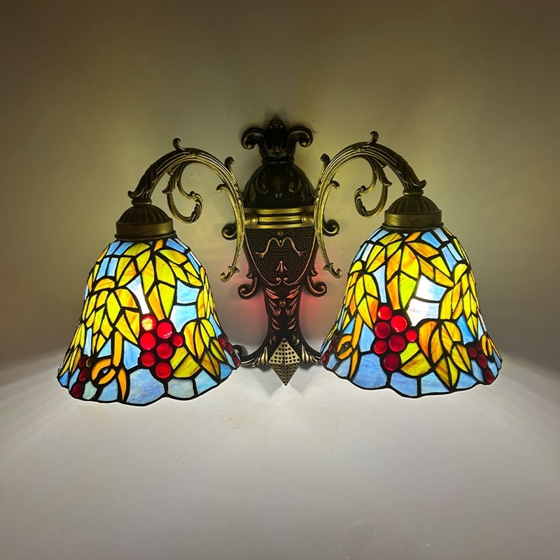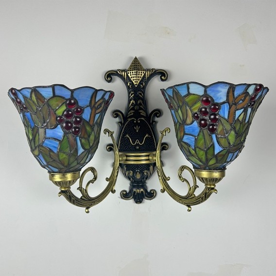 Ръчно изработен винтидж абажур от грозде в стил Тифани с витраж и стенна лампа Тифани