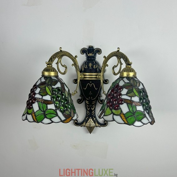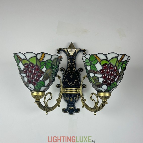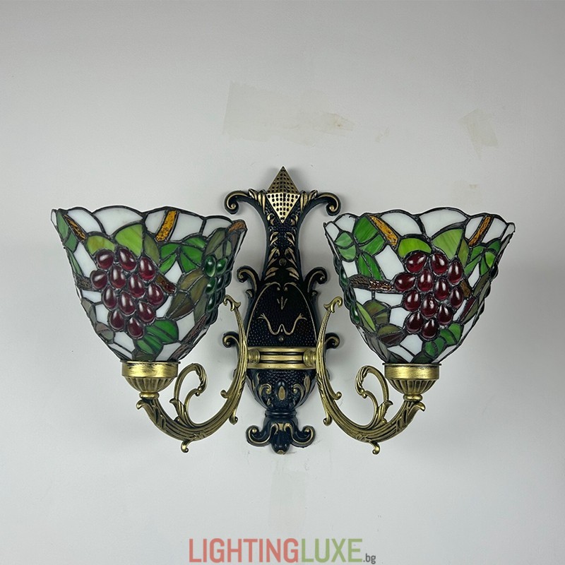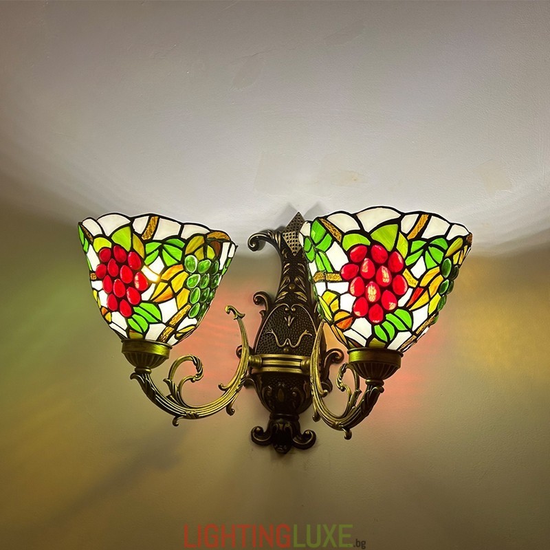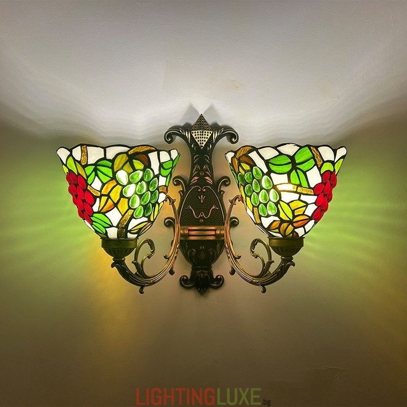 Ръчно изработен винтидж абажур от грозде в стил Тифани с витраж и стенна лампа Тифани