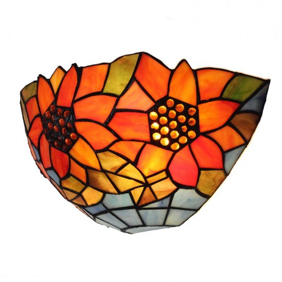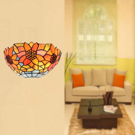 Ръчно изработен винтидж 12-инчов пасторален ретро стенен аплик Тифани с абажур с шарка на слънчогледи