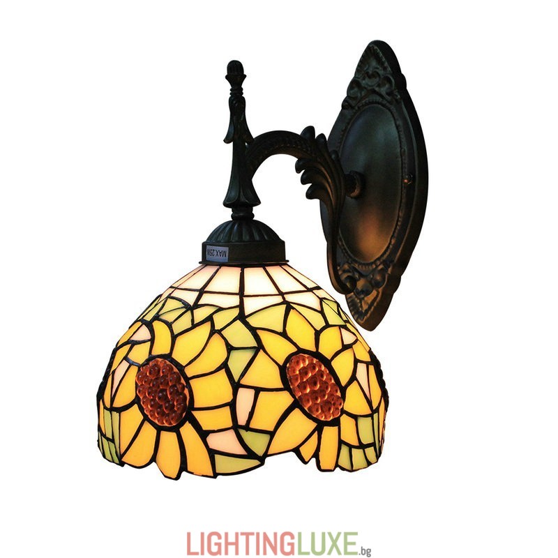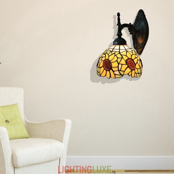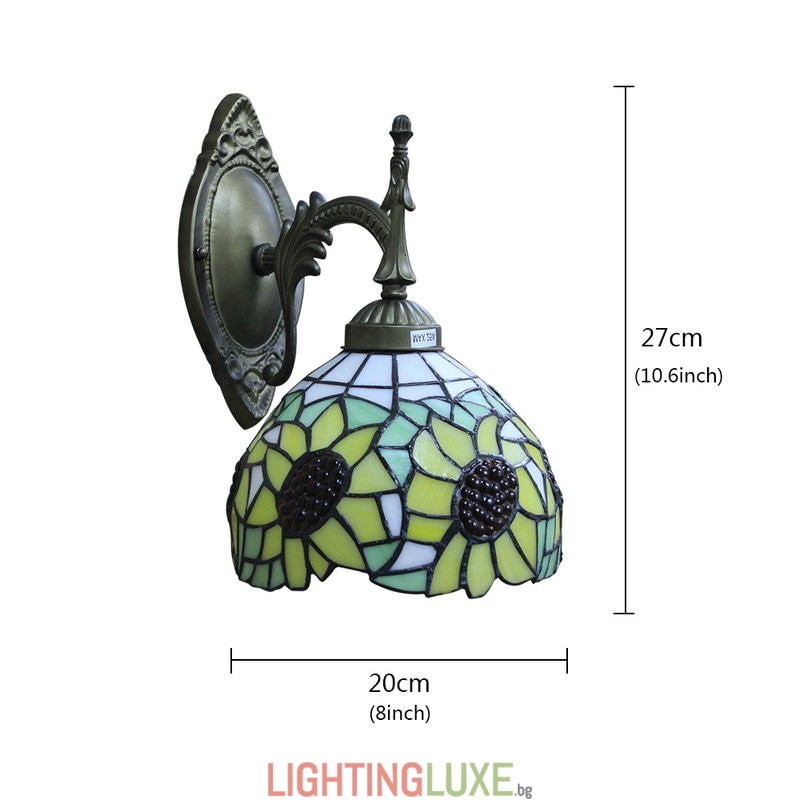 Ръчно изработен винтидж 8-инчов пасторален ретро стенен аплик Тифани с абажур с шарка на слънчогледи