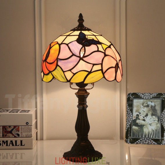 Ръчно изработена винтидж 8-инчова настолна лампа Тифани с витраж в стил пеперуда