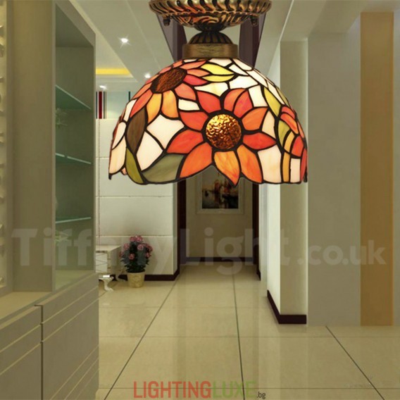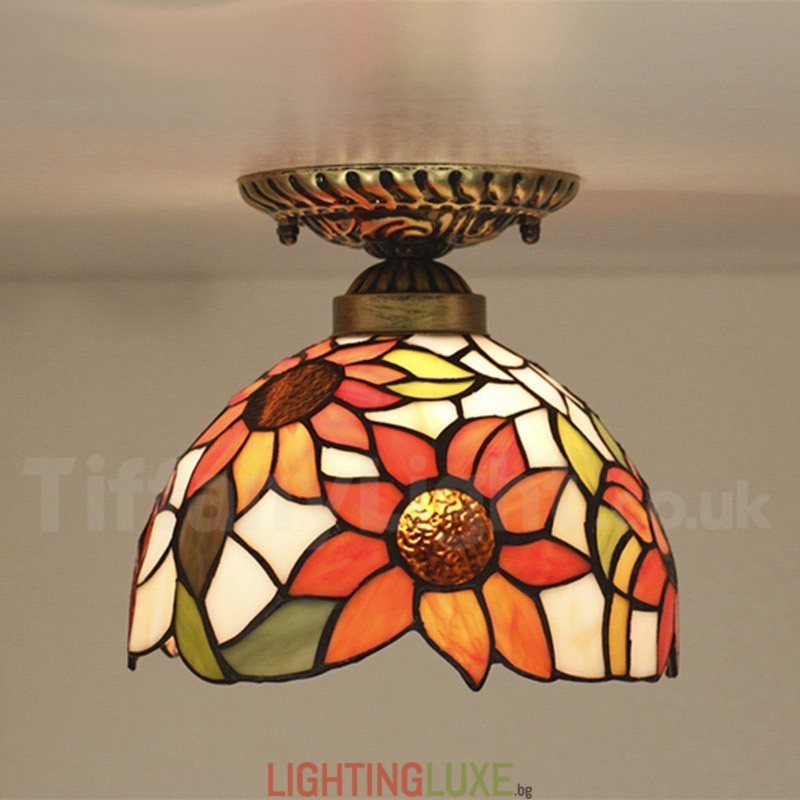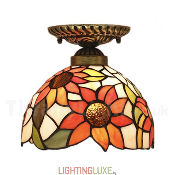 Ръчно изработена винтидж 8-инчова витражна лампа Tiffany в стил слънчогледи