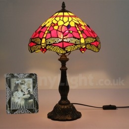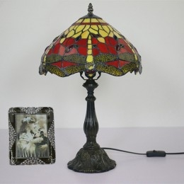 Ръчно изработена винтидж 12-инчова настолна лампа Тифани с витраж и водно конче
