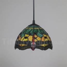Ръчно изработена винтидж 8-инчова витражна висяща лампа Tiffany в стил водно конче