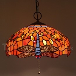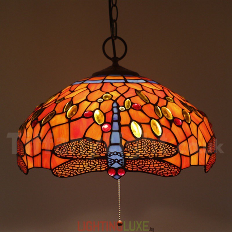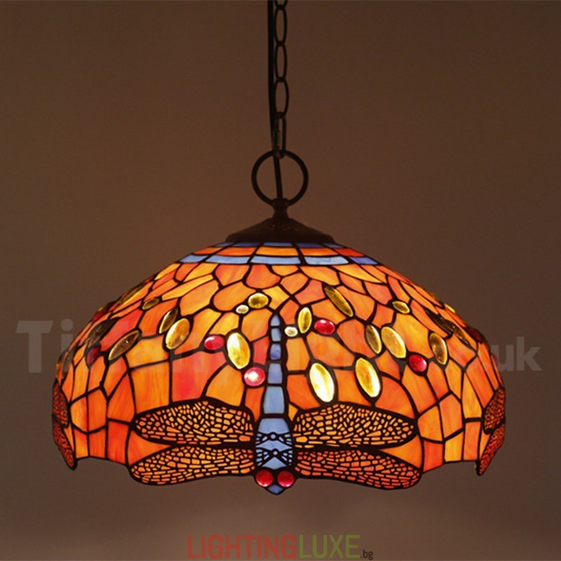 Ръчно изработена винтидж 16-инчова витражна висяща лампа Tiffany в стил водно конче