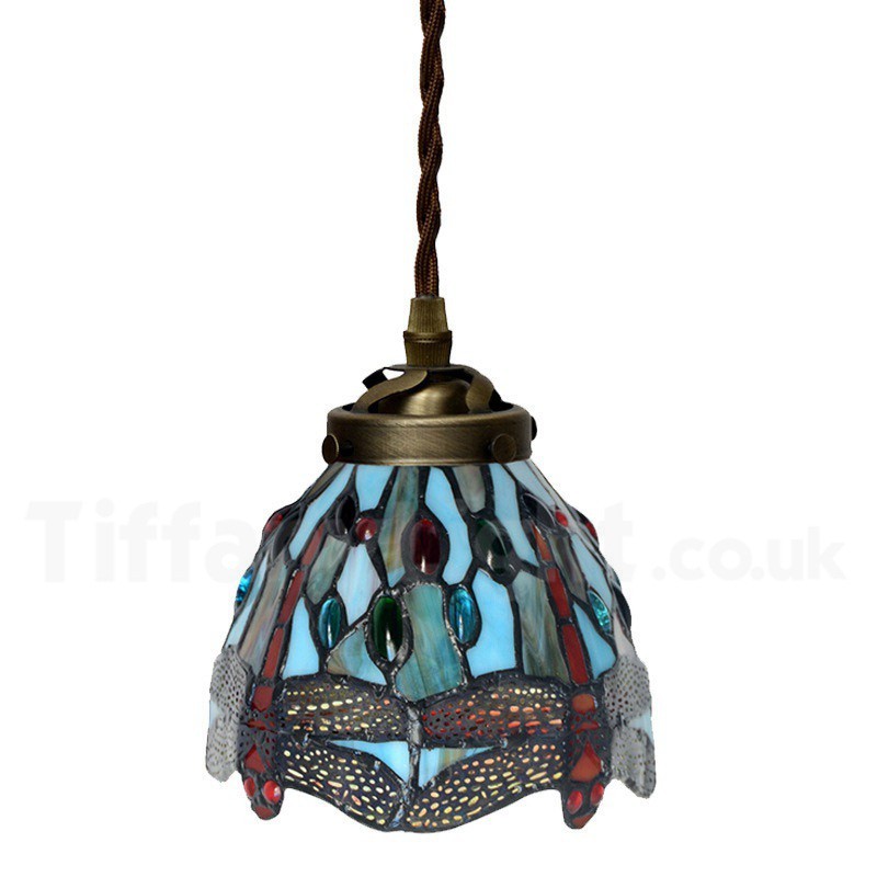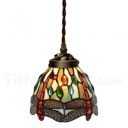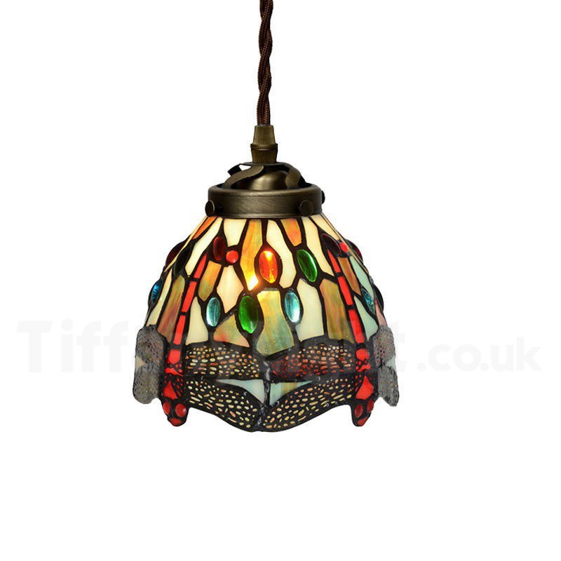 Ръчно изработена винтидж 7-инчова висяща лампа Dragonfly Tiffany