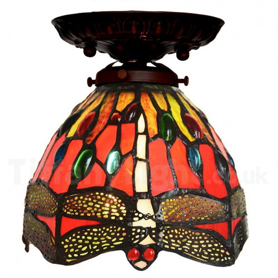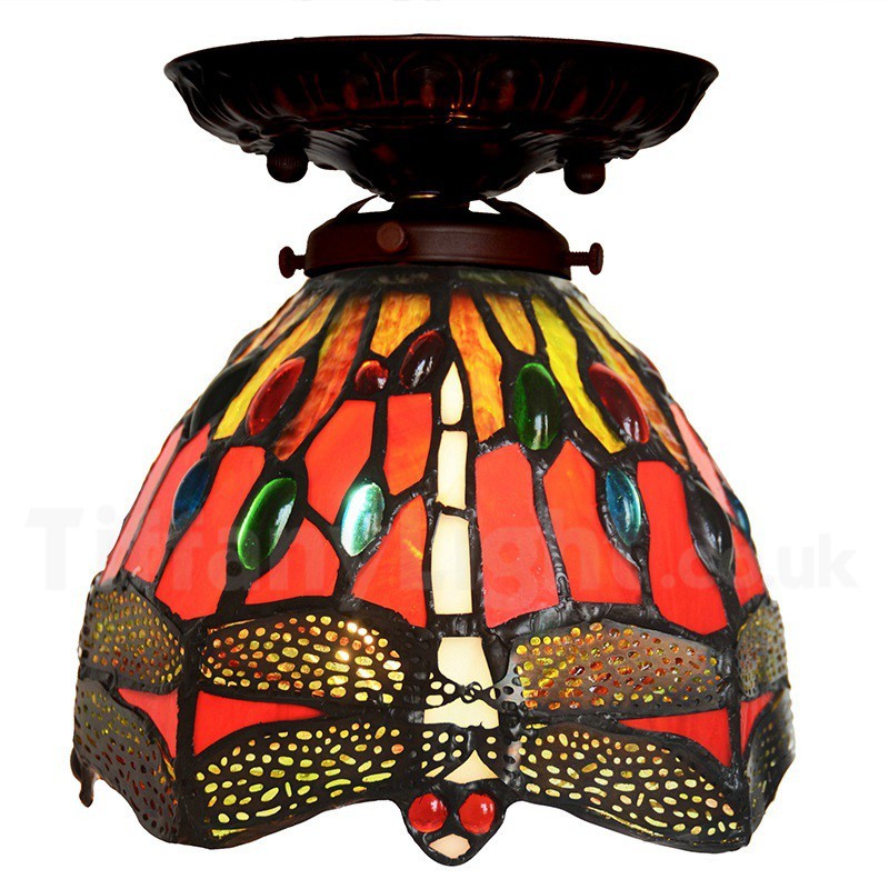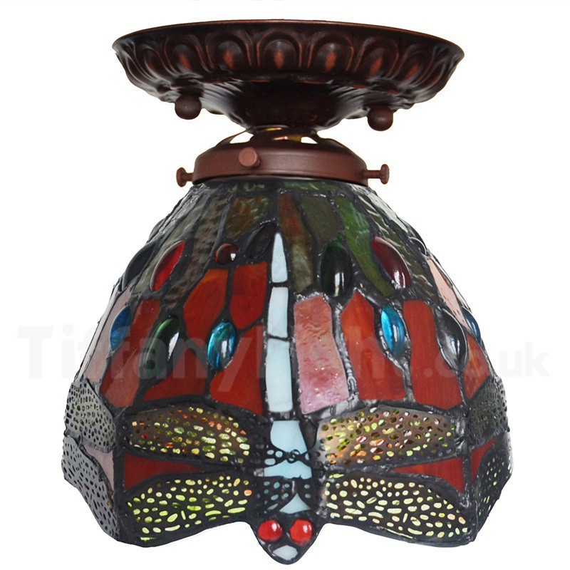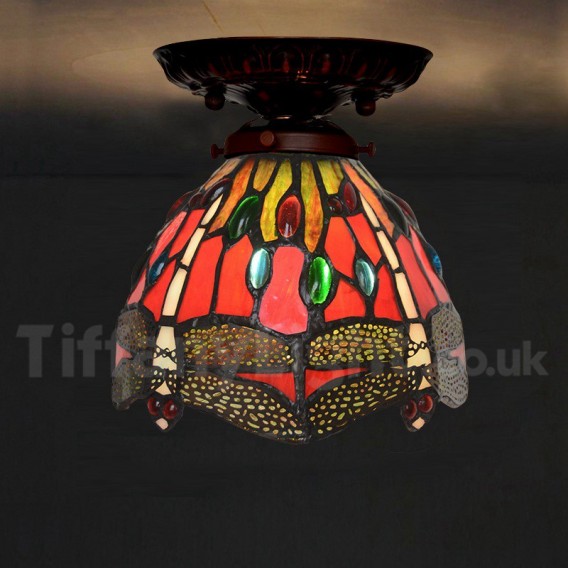 Ръчно изработена винтидж 7-инчова ретро лампа Dragonfly Tiffany за вграждане