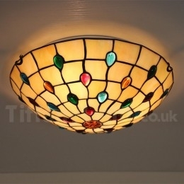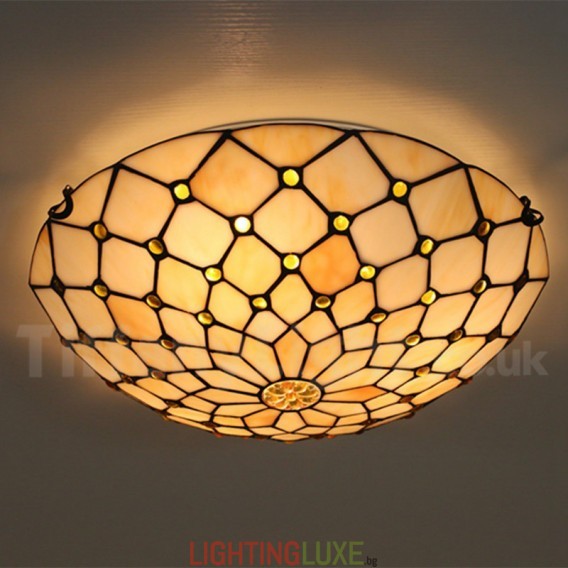 Ръчно изработена винтидж 16-инчова витражна лампа Tiffany за вграден монтаж